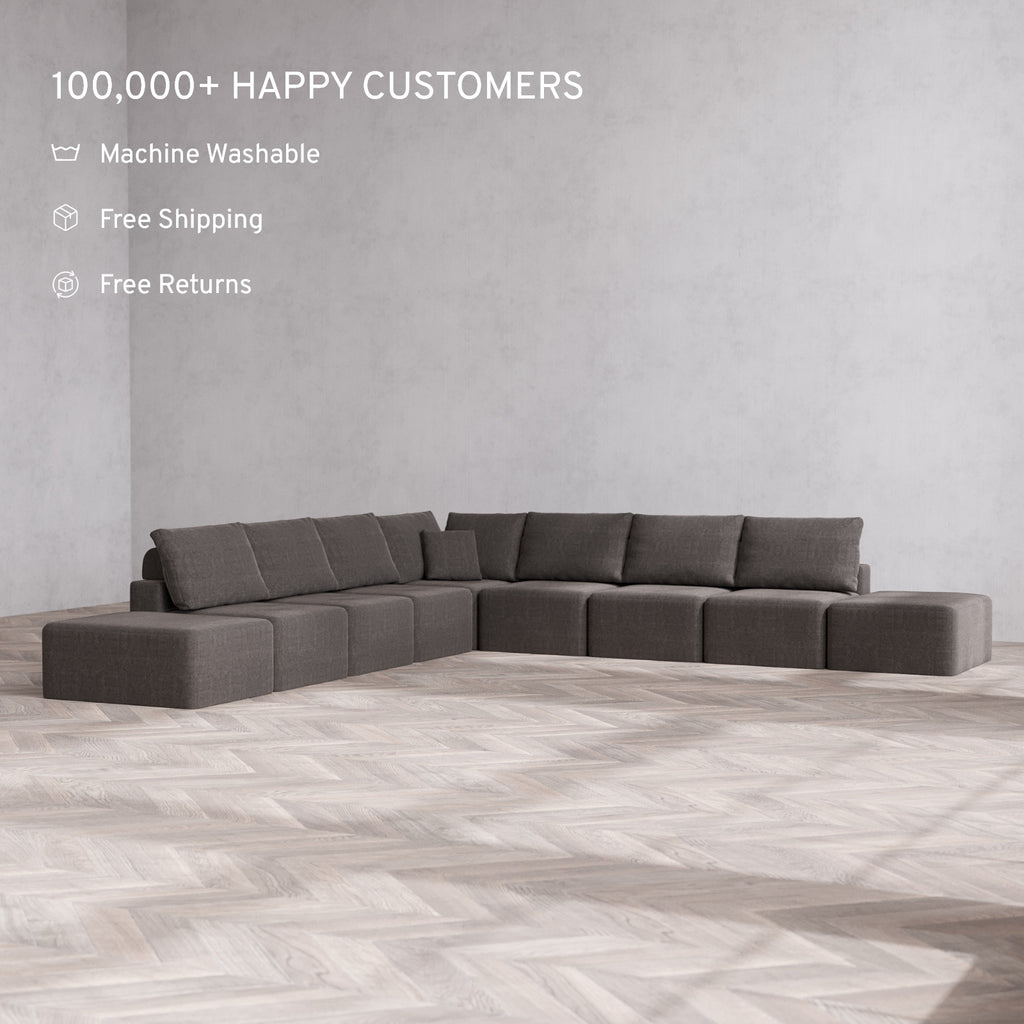 Machine Washable: Every piece of fabric—including the internal quilted duvet—is fully removable and machine washable. It’s the only Cloud-style sofa you can truly deep clean, effortlessly.