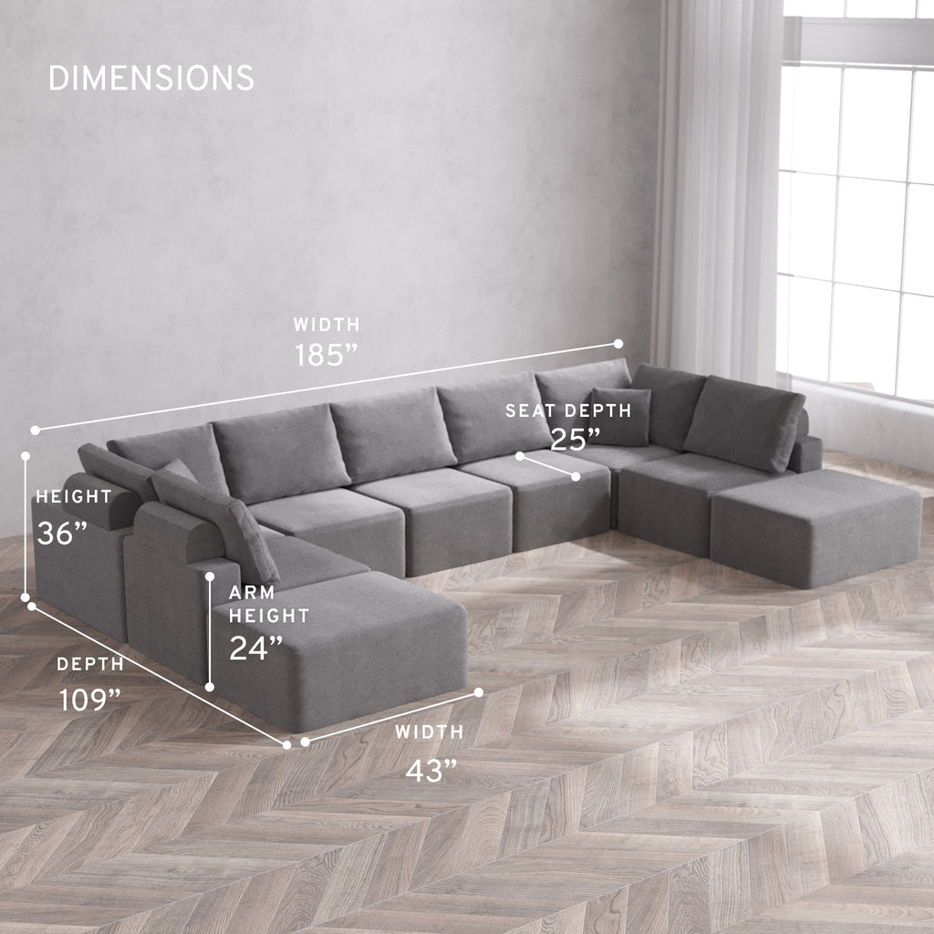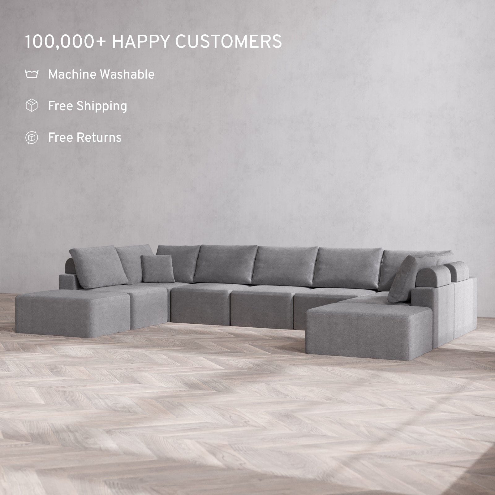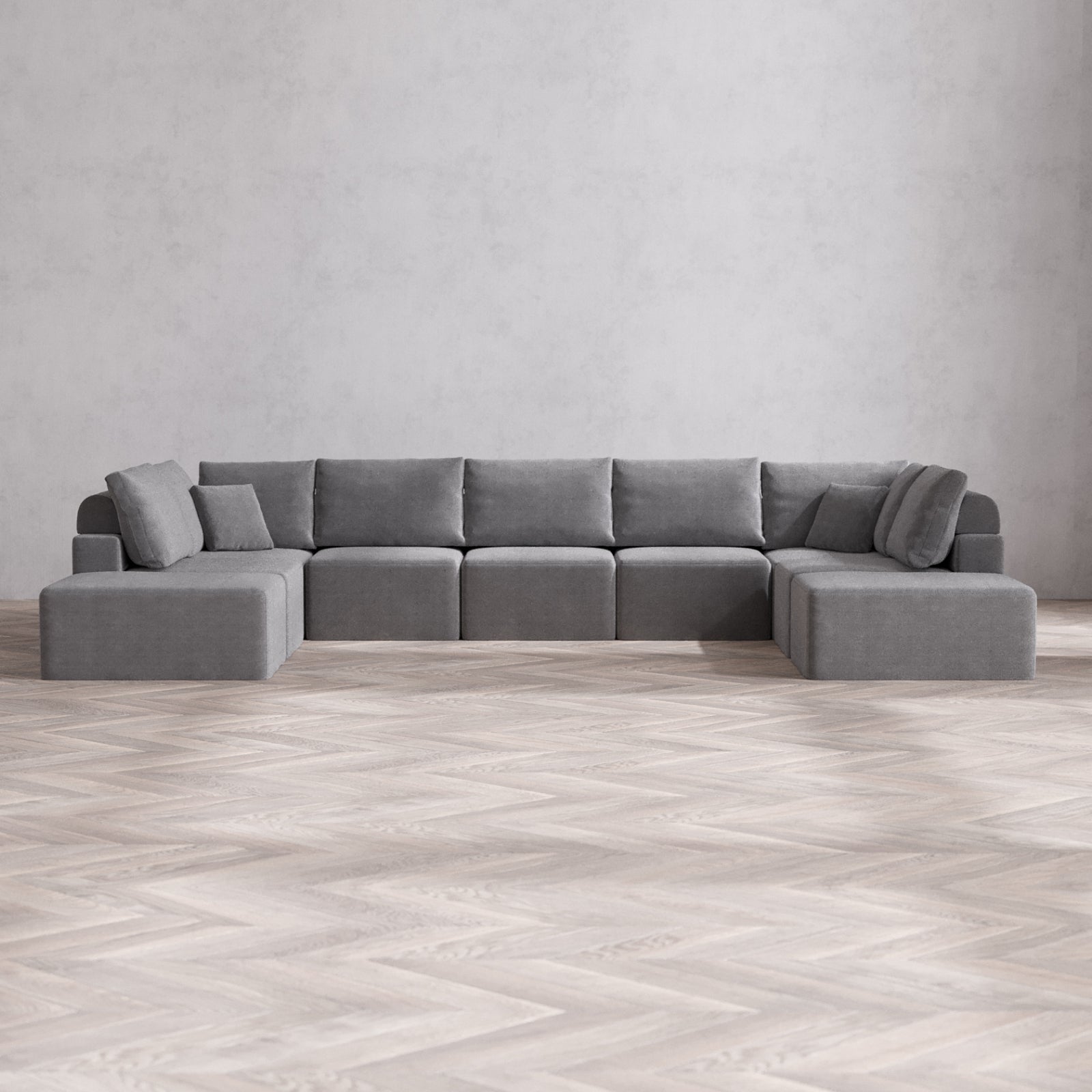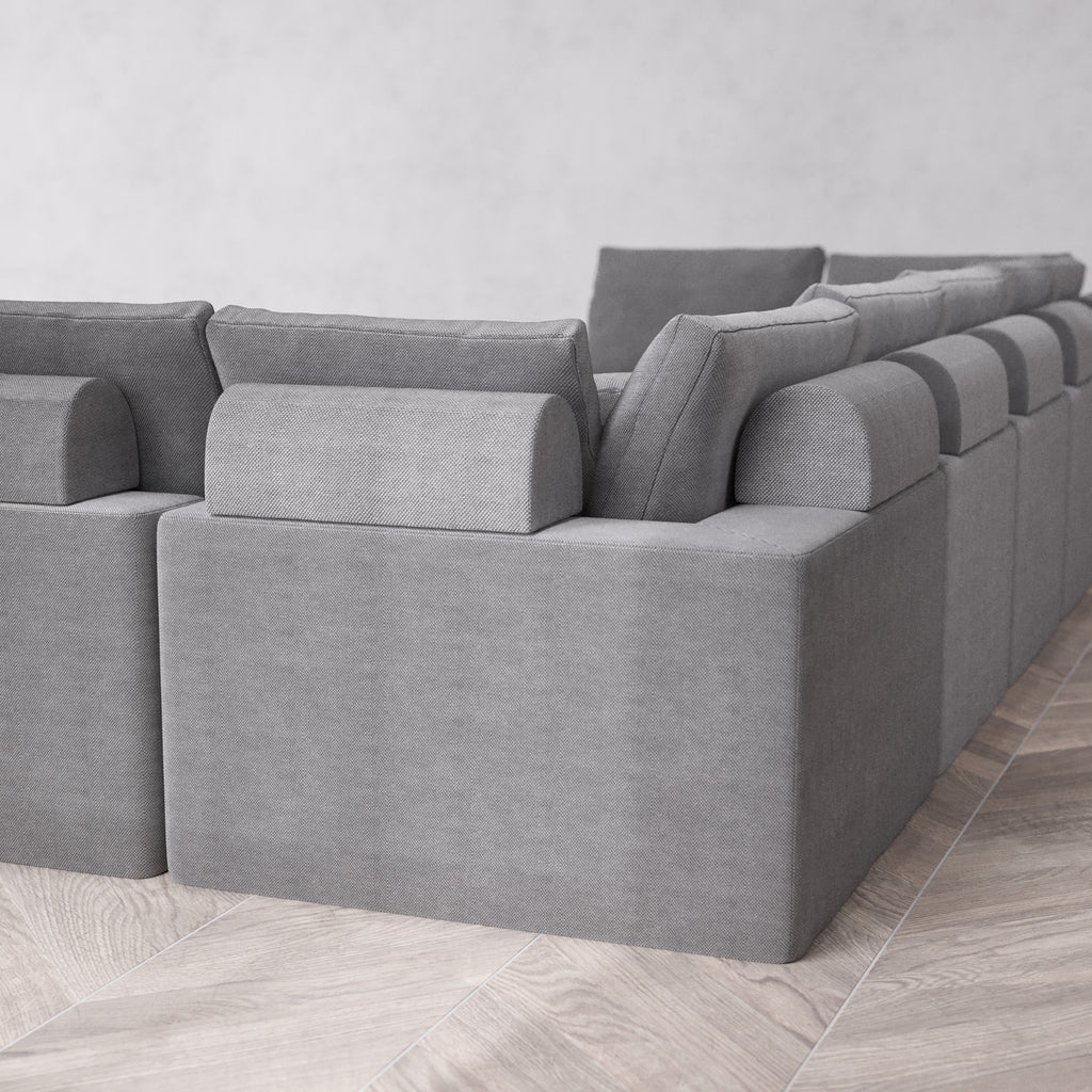 Modular Washable 9-Seater Open-Ends U Sectional Cloud + Bolster Sofa | Lux Weave in Slate