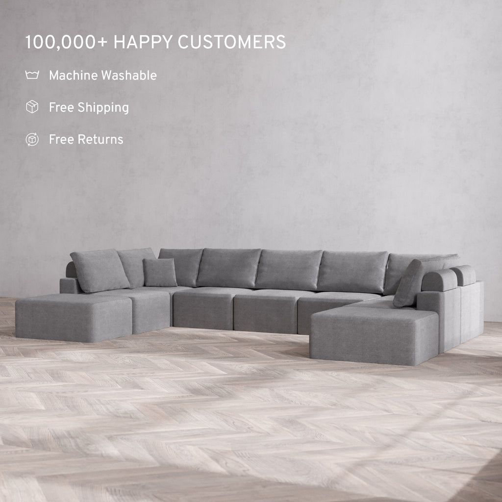 The Only Washable Cloud Sofa: With a waterproof frame and fabrics that resist pets, stains, and spills, this sofa is made to handle everyday messes. Our patent-pending covers are machine washable and fully interchangeable—buy extra sets to change up your look anytime.