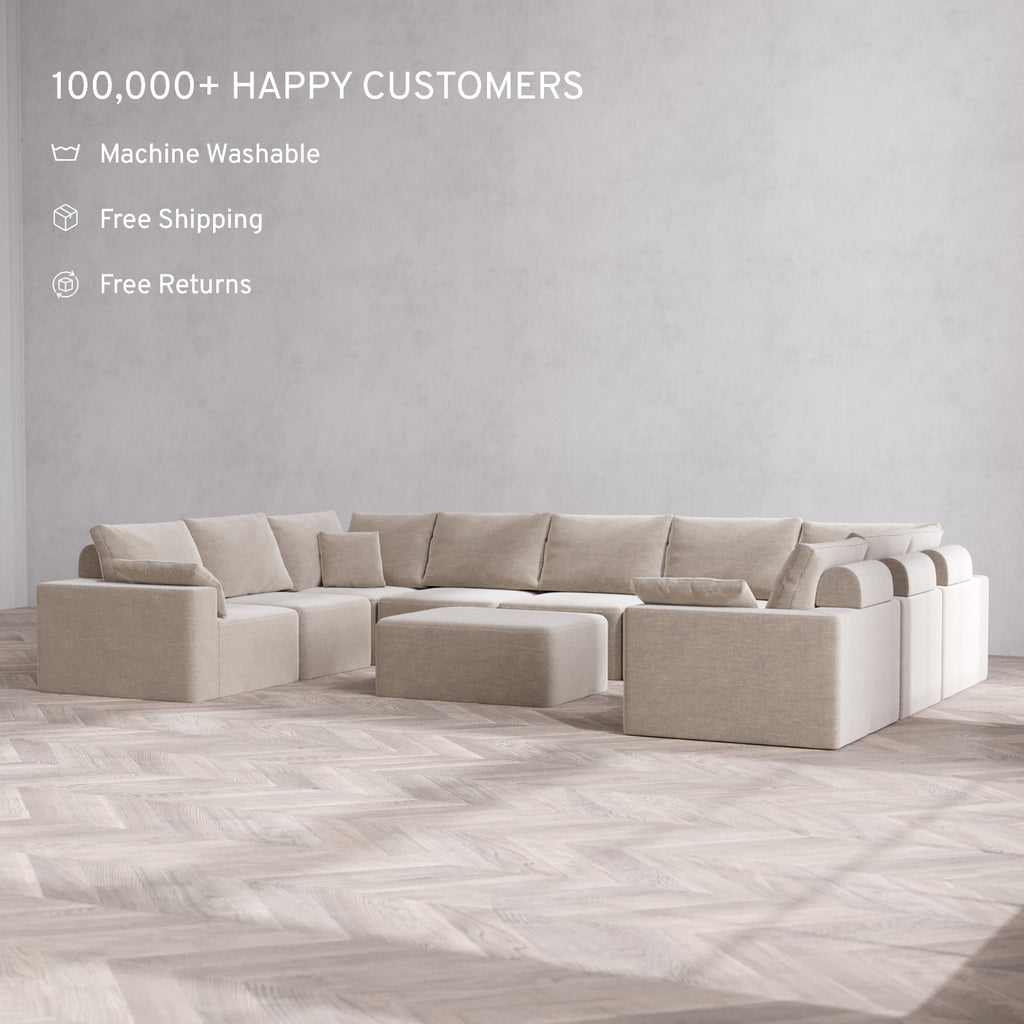 The Only Washable Cloud Sofa: With a waterproof frame and fabrics that resist pets, stains, and spills, this sofa is made to handle everyday messes. Our patent-pending covers are machine washable and fully interchangeable—buy extra sets to change up your look anytime.