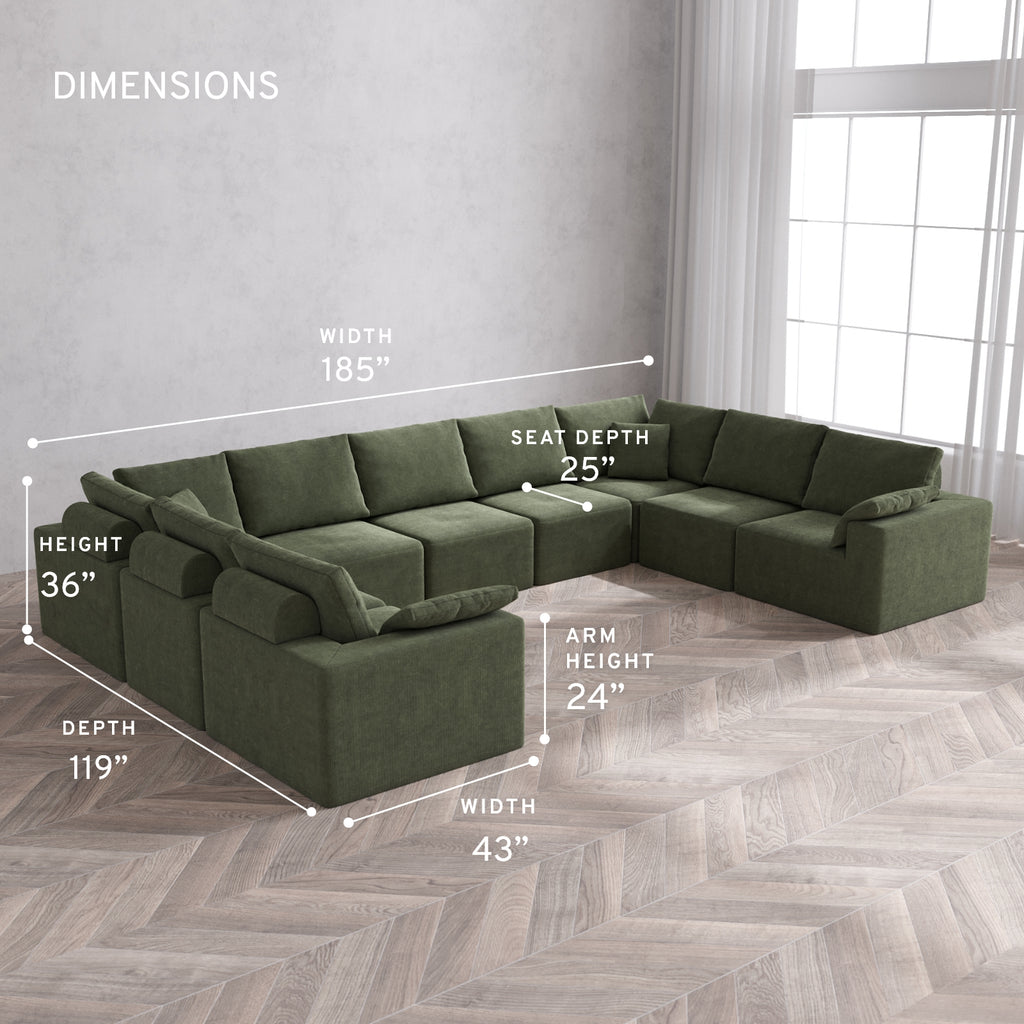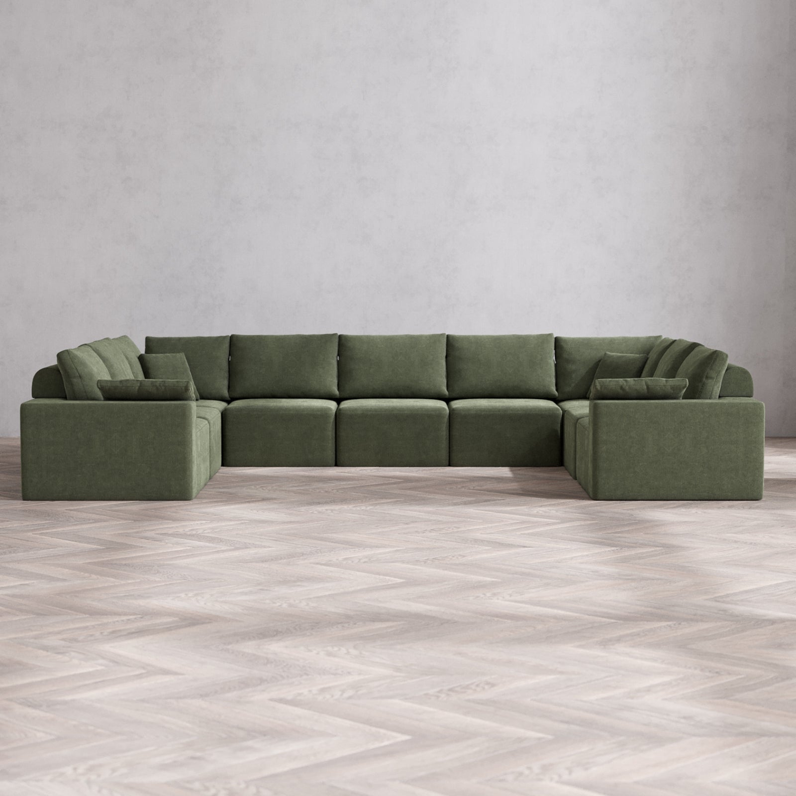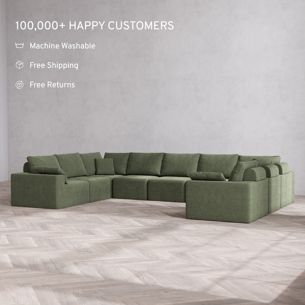 Modular Washable 9-Seater U Sectional Cloud + Bolster Sofa | Luxe Corduroy in Juniper