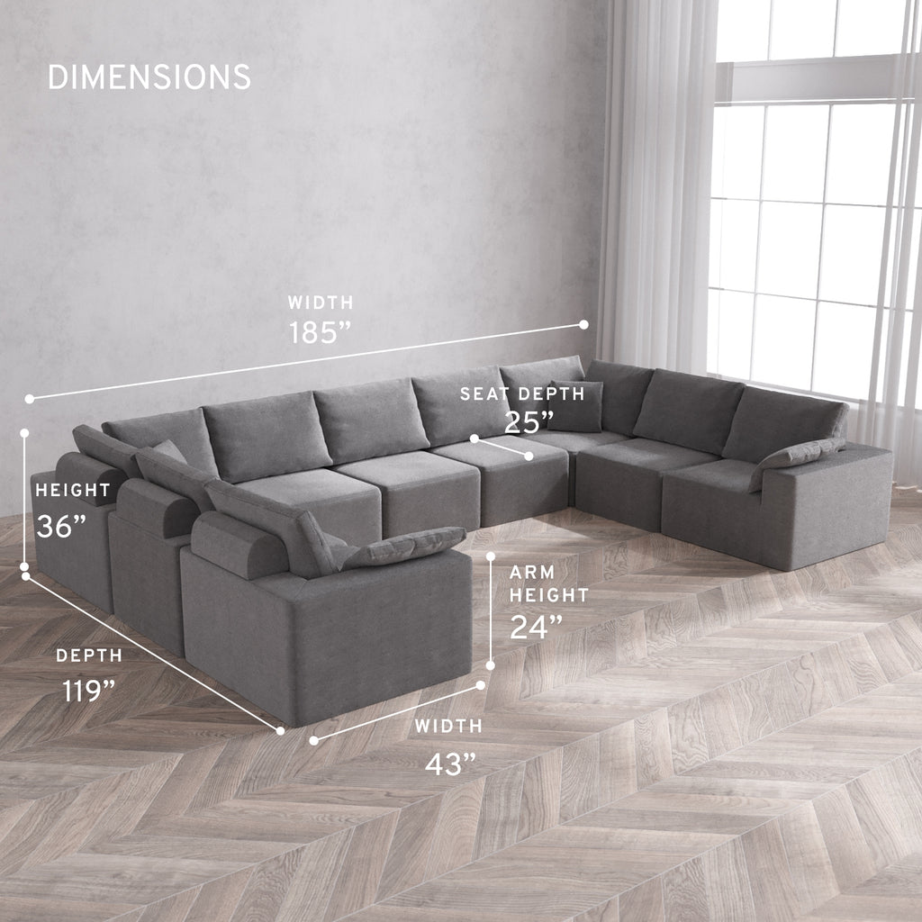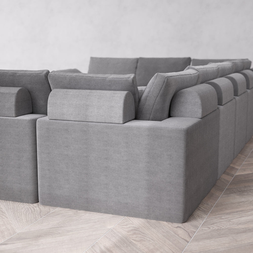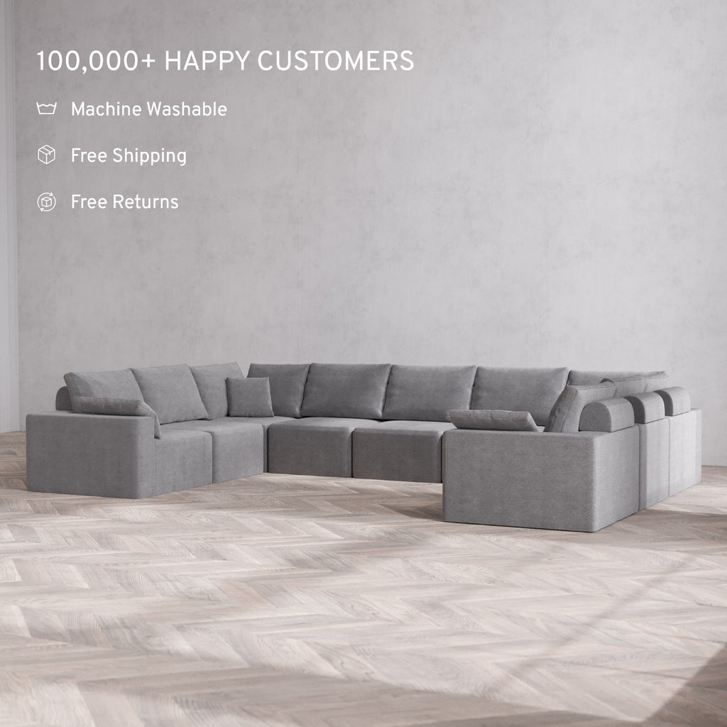 Modular Washable 9-Seater U Sectional Cloud + Bolster Sofa | Lux Weave in Slate