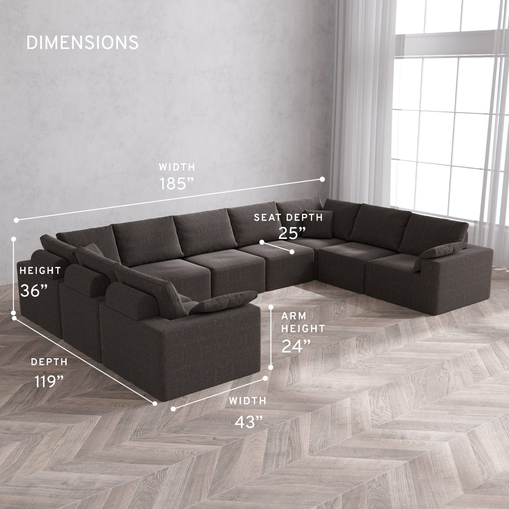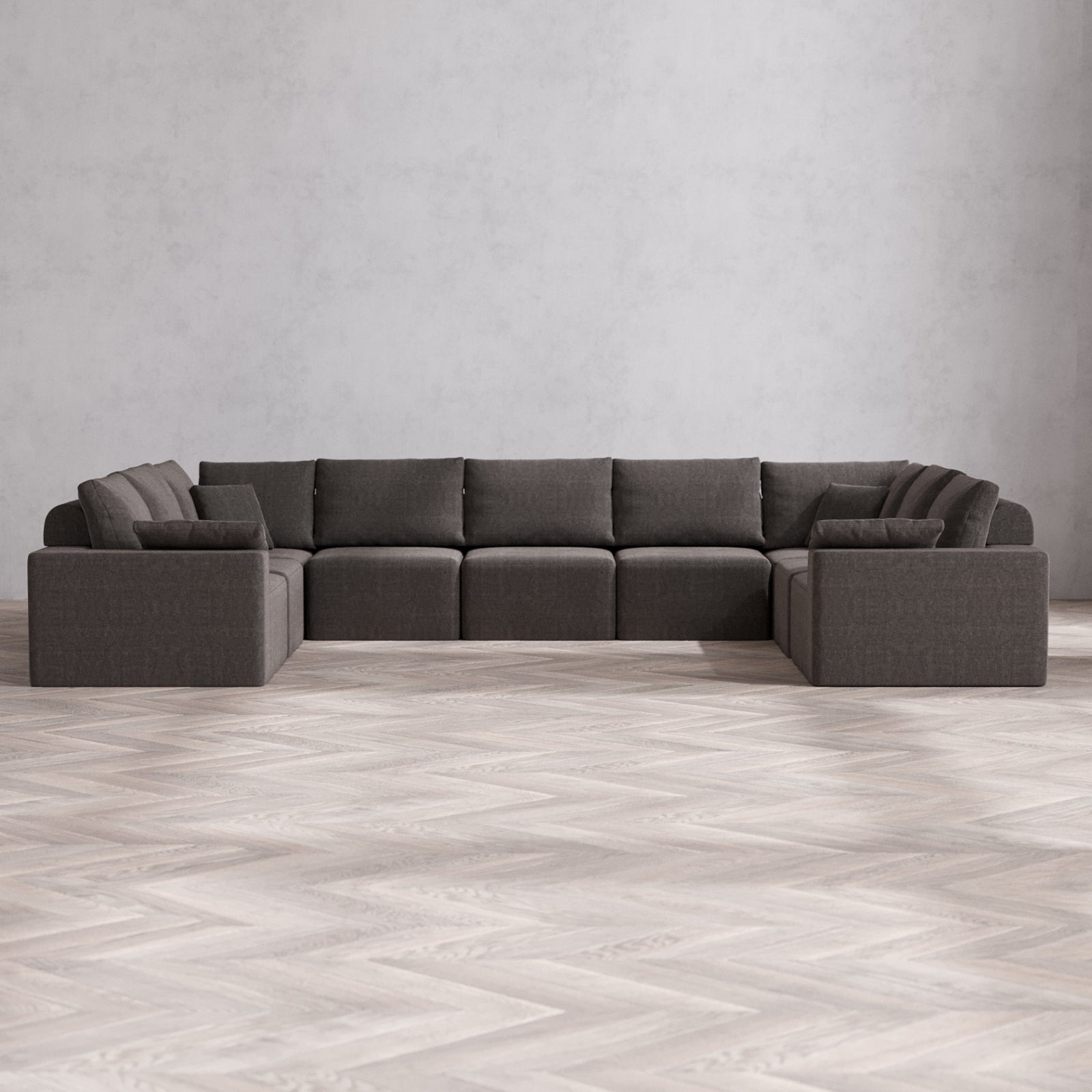 Modular Washable 9-Seater U Sectional Cloud + Bolster Sofa | Heirloom Velvet in Truffle