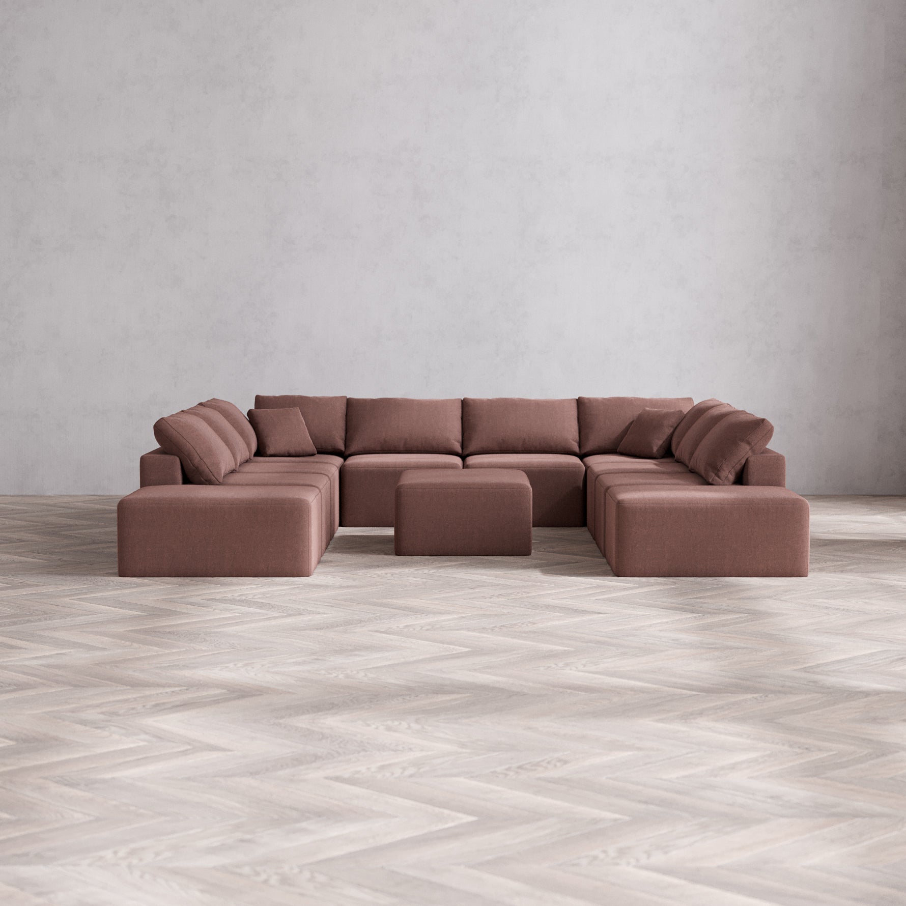 Slipcover Only - Modular Washable 10-Seater Open-Ends U Sectional + Chaise Ottoman Cloud Sofa in Sumac