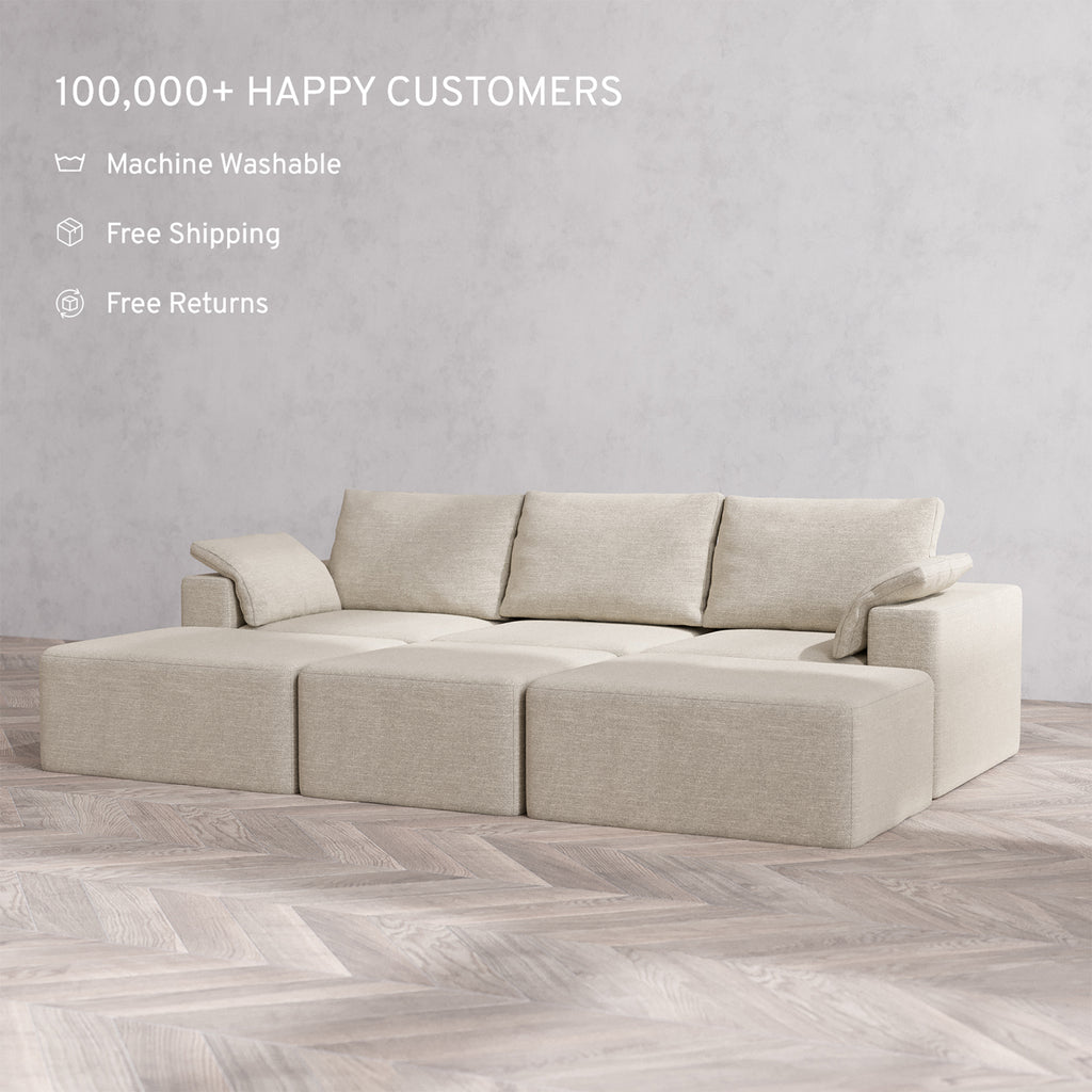 Machine Washable: Every piece of fabric—including the internal quilted duvet—is fully removable and machine washable. It’s the only Cloud-style sofa you can truly deep clean, effortlessly.
