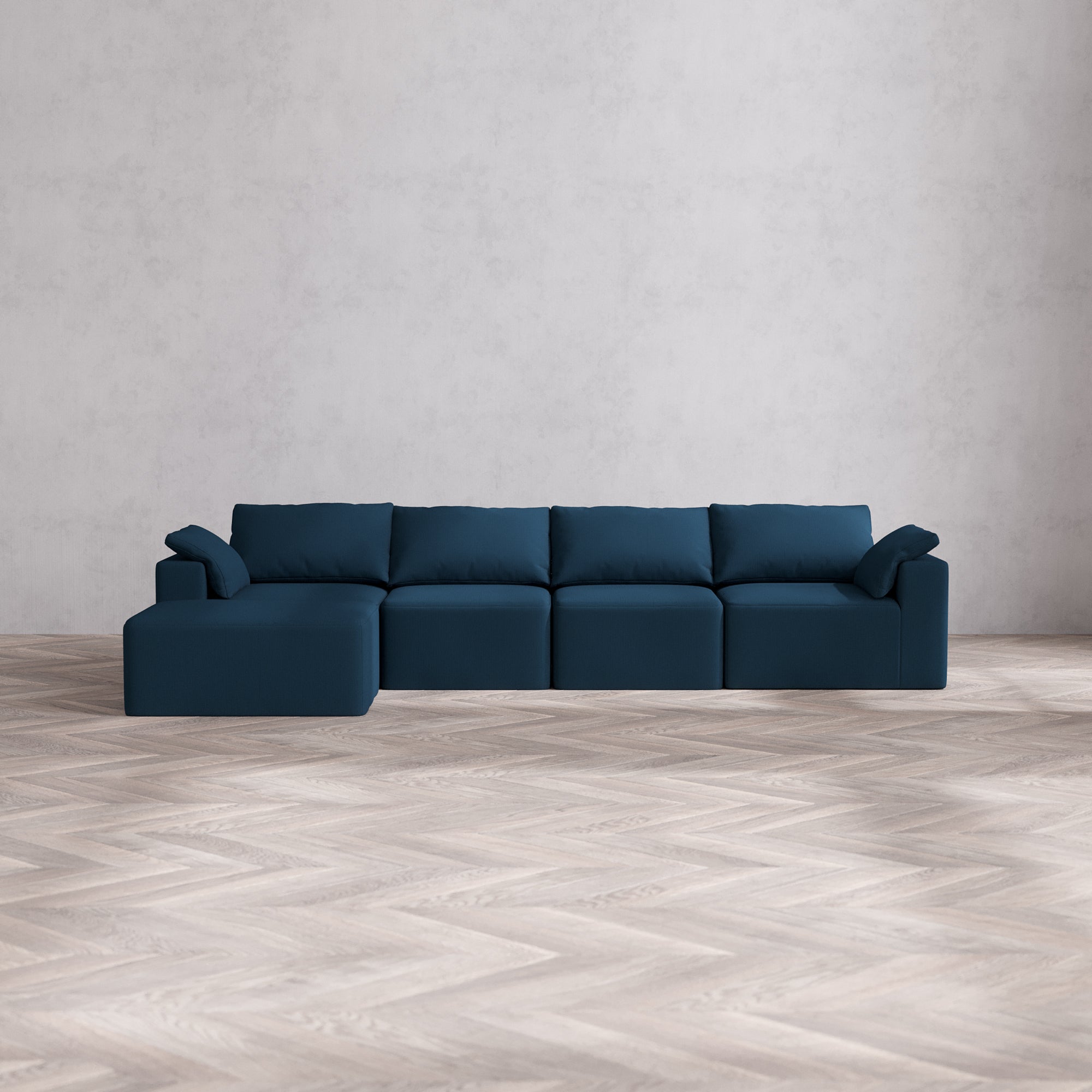 Slipcover Only - Modular Washable 4-Seater Chaise Sectional Cloud Sofa in Lazuli