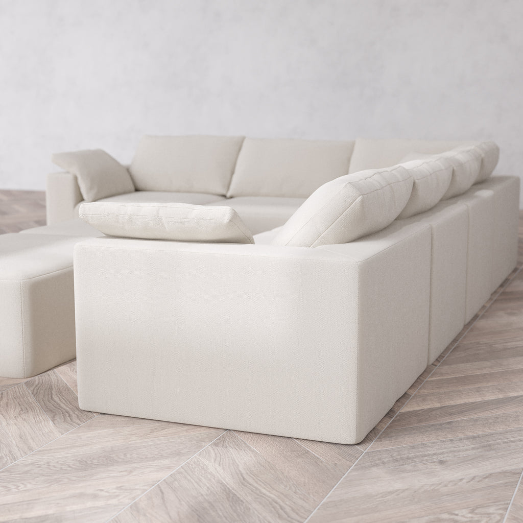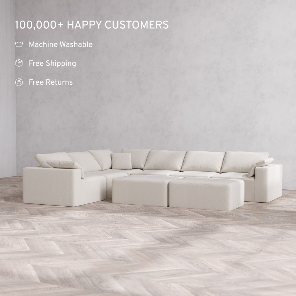 Slipcover Only - Modular Washable 6-Seater Corner Sectional + Chaise Ottoman Bench Cloud Sofa in Pearl