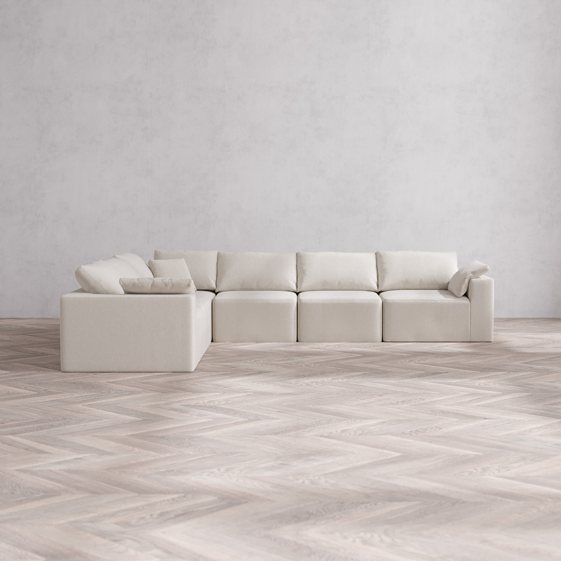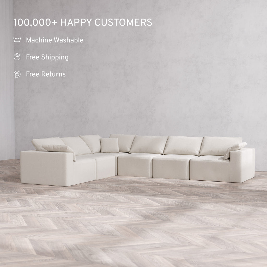 Slipcover Only - Modular Washable 6-Seater Corner Sectional Cloud Sofa in Pearl