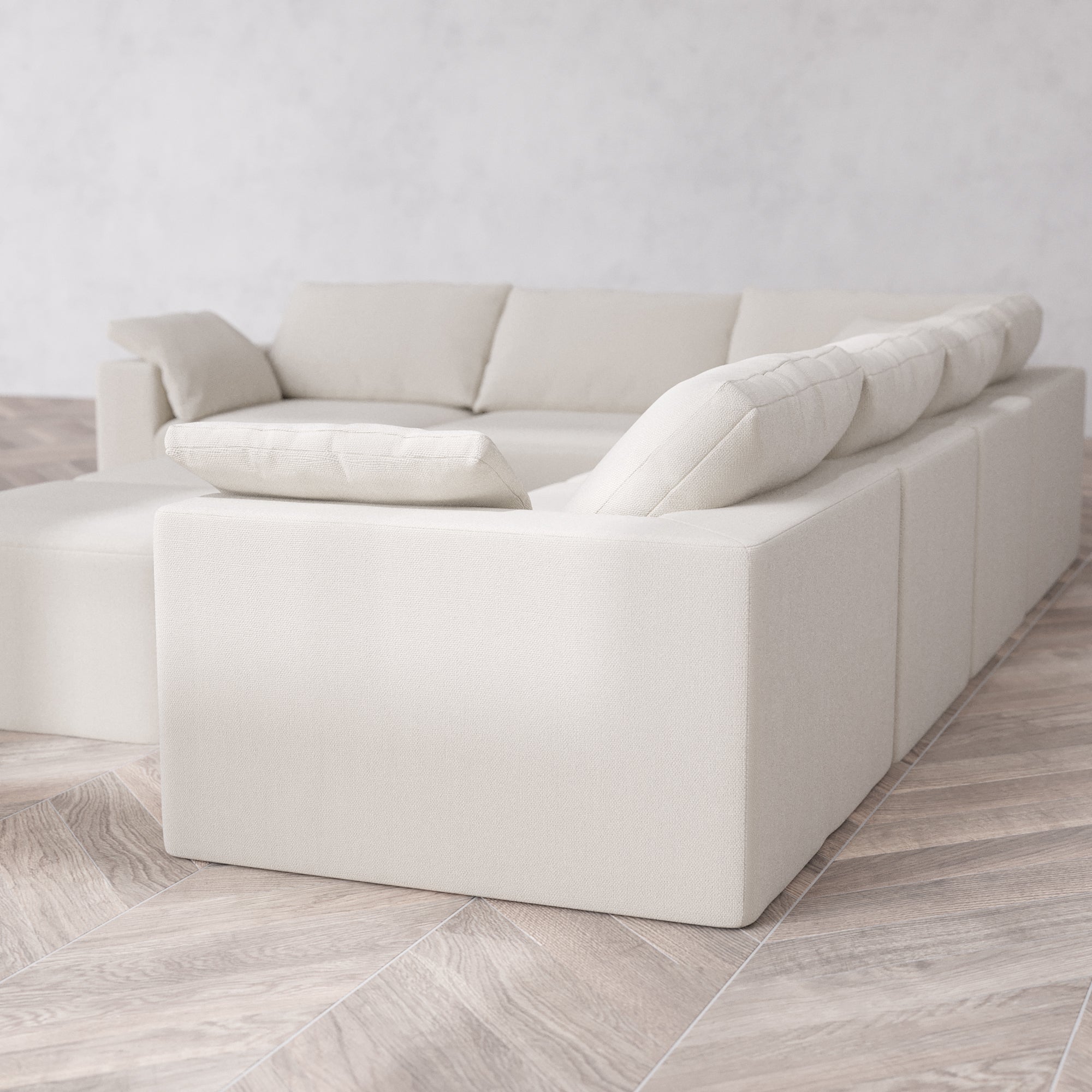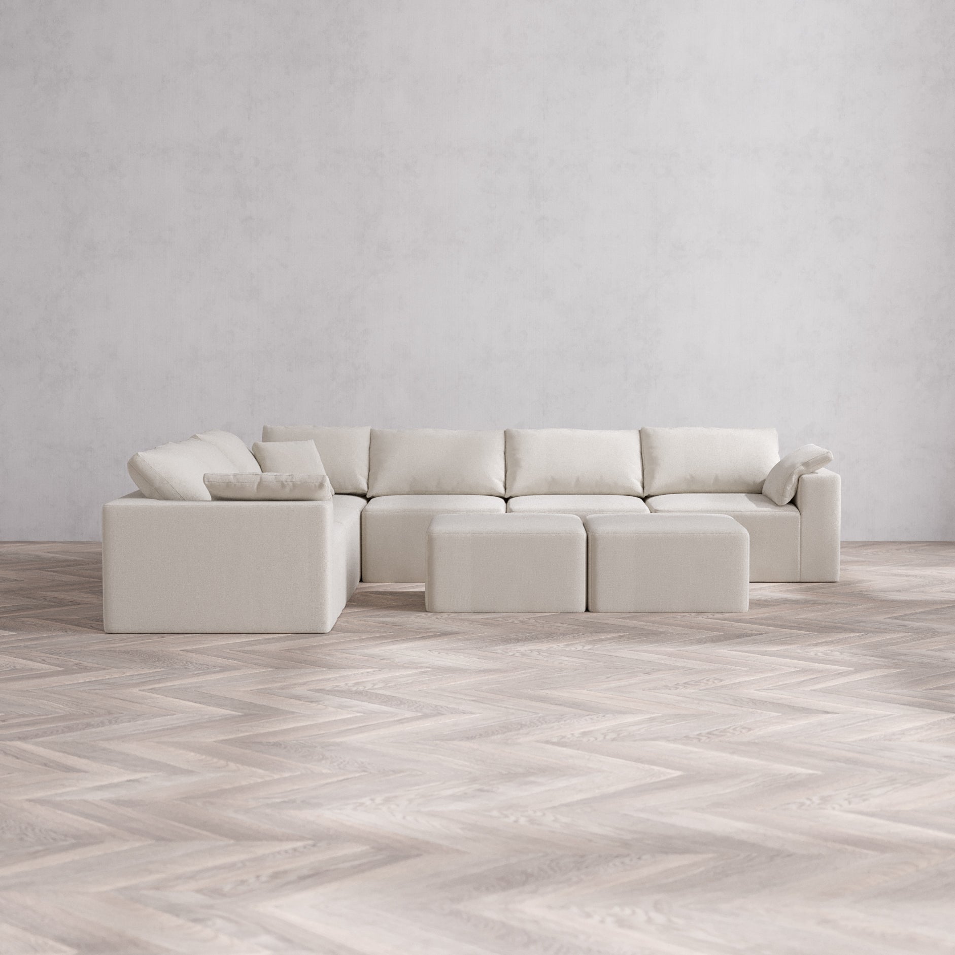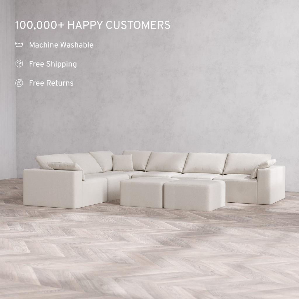 Slipcover Only - Modular Washable 6-Seater Corner Sectional + Ottoman Bench Cloud Sofa in Pearl