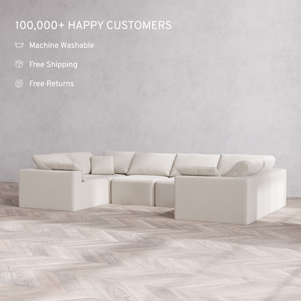 Slipcover Only - Modular Washable 6-Seater U Sectional Cloud Sofa in Pearl
