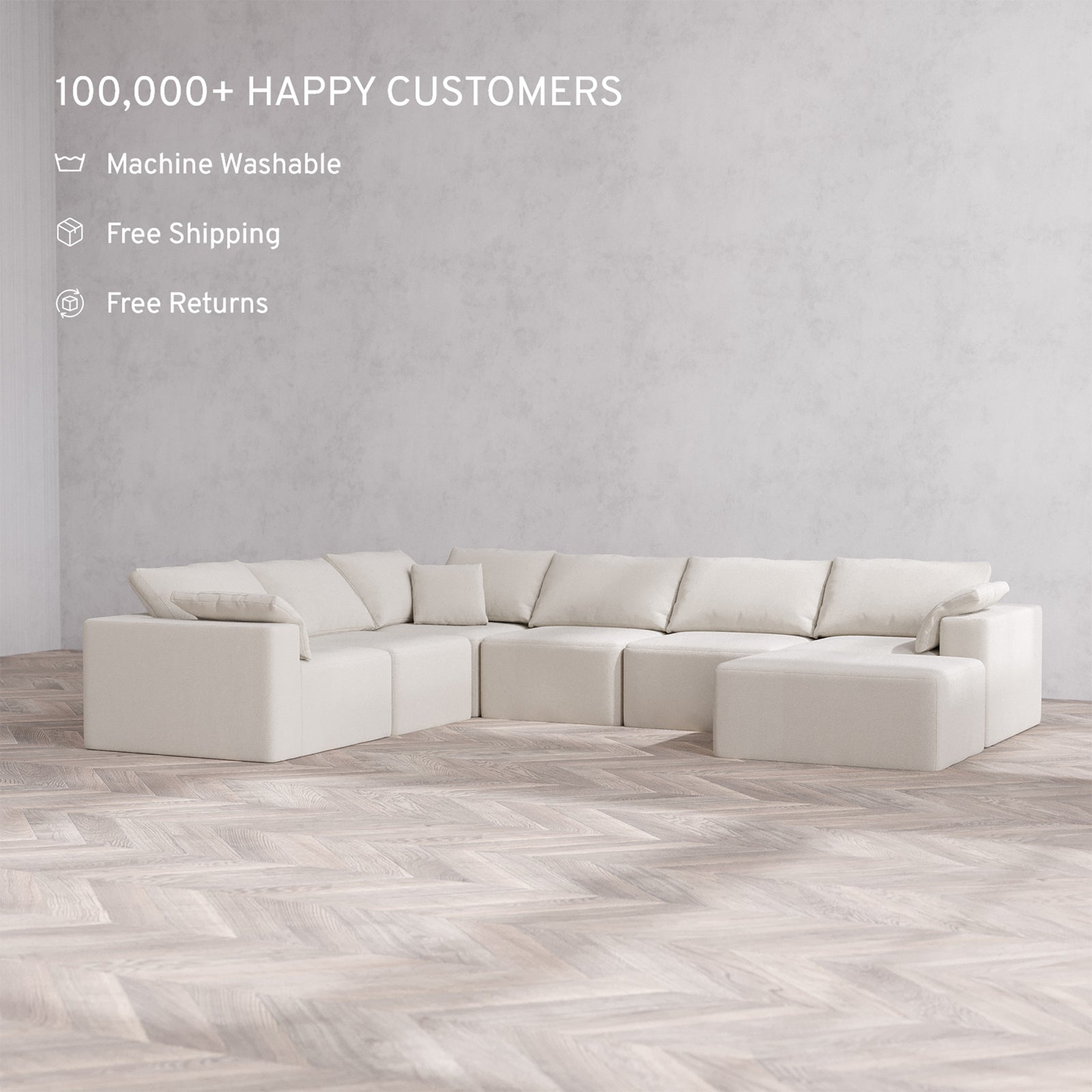 Machine Washable: Every piece of fabric—including the internal quilted duvet—is fully removable and machine washable. It’s the only Cloud-style sofa you can truly deep clean, effortlessly.