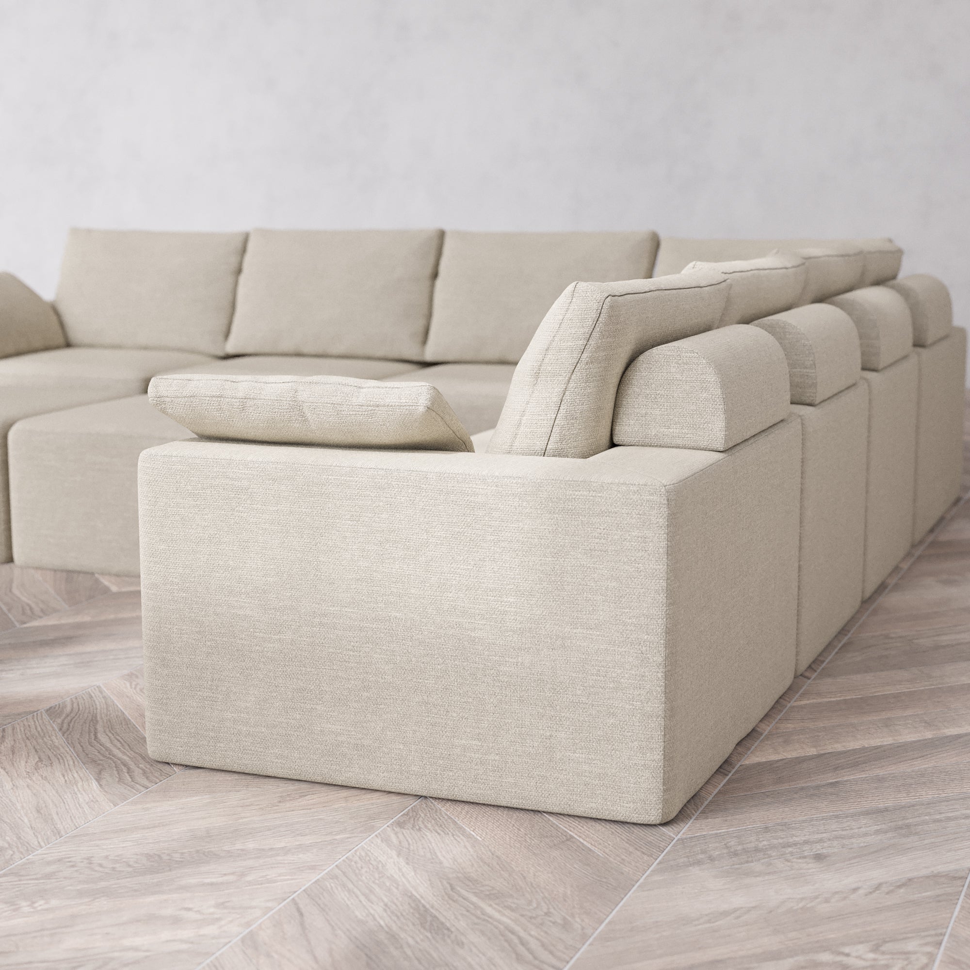 Slipcover Only - Modular Washable 7-Seater Corner Sectional + Chaise Ottoman Bench Cloud + Bolster Sofa in Sandstone