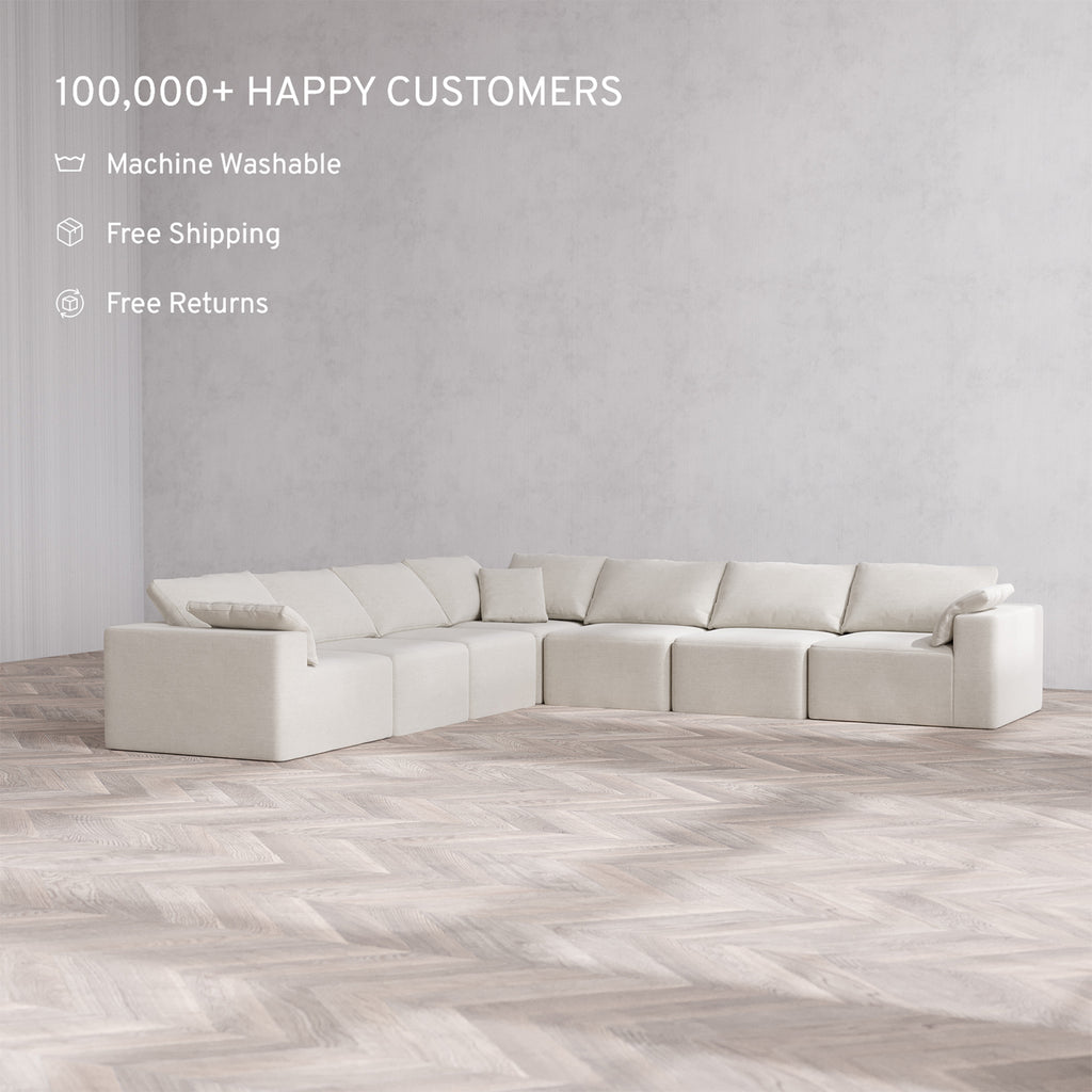 Slipcover Only - Modular Washable 7-Seater Corner Sectional Cloud Sofa in Cashew