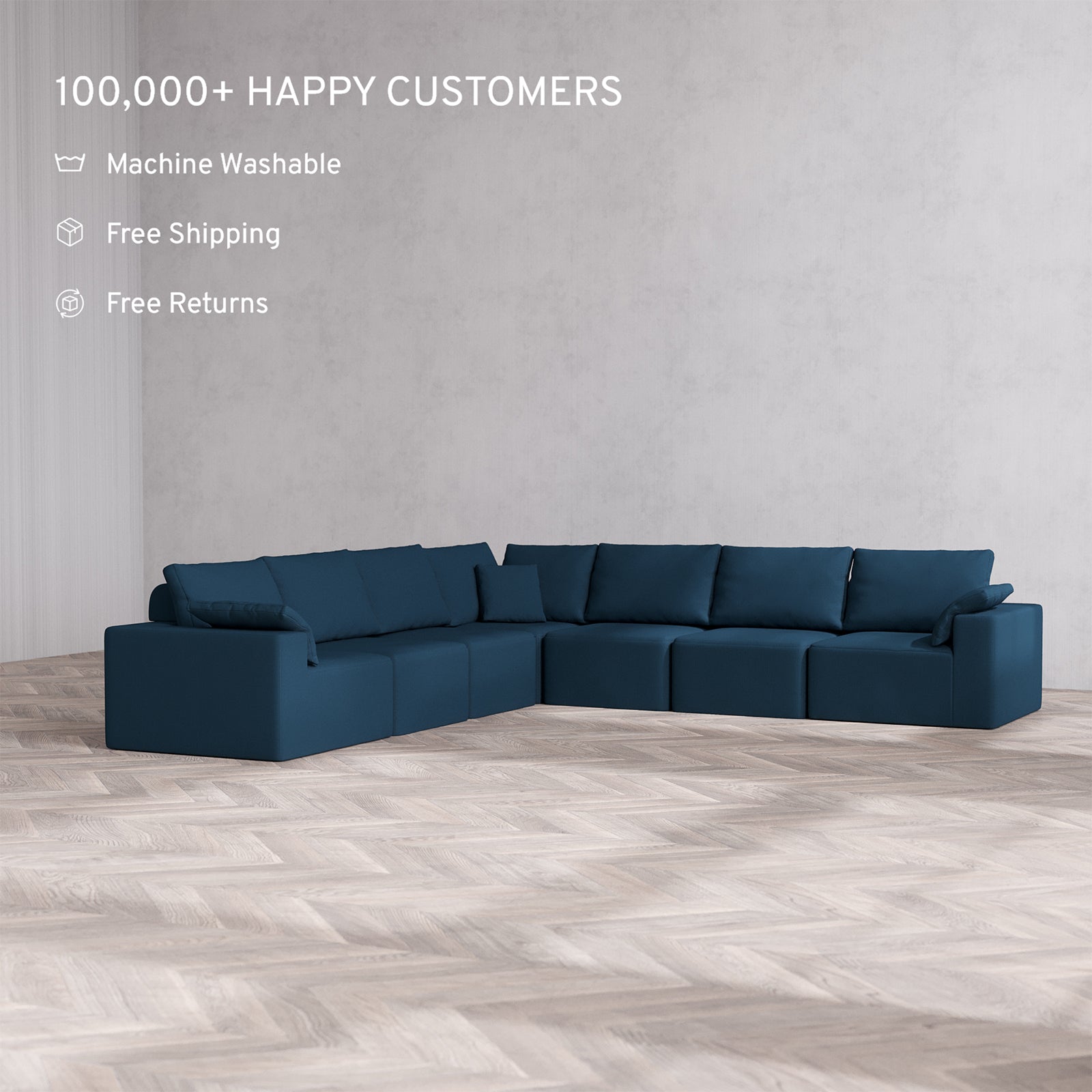 Machine Washable: Every piece of fabric—including the internal quilted duvet—is fully removable and machine washable. It’s the only Cloud-style sofa you can truly deep clean, effortlessly.