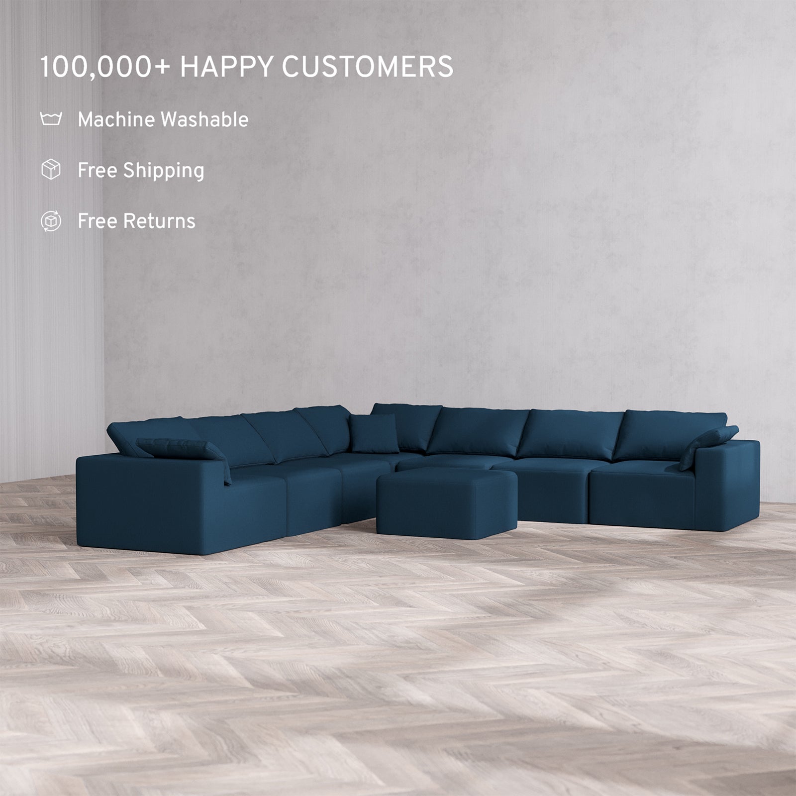Slipcover Only - Modular Washable 7-Seater Corner Sectional + Ottoman Cloud Sofa in Lazuli