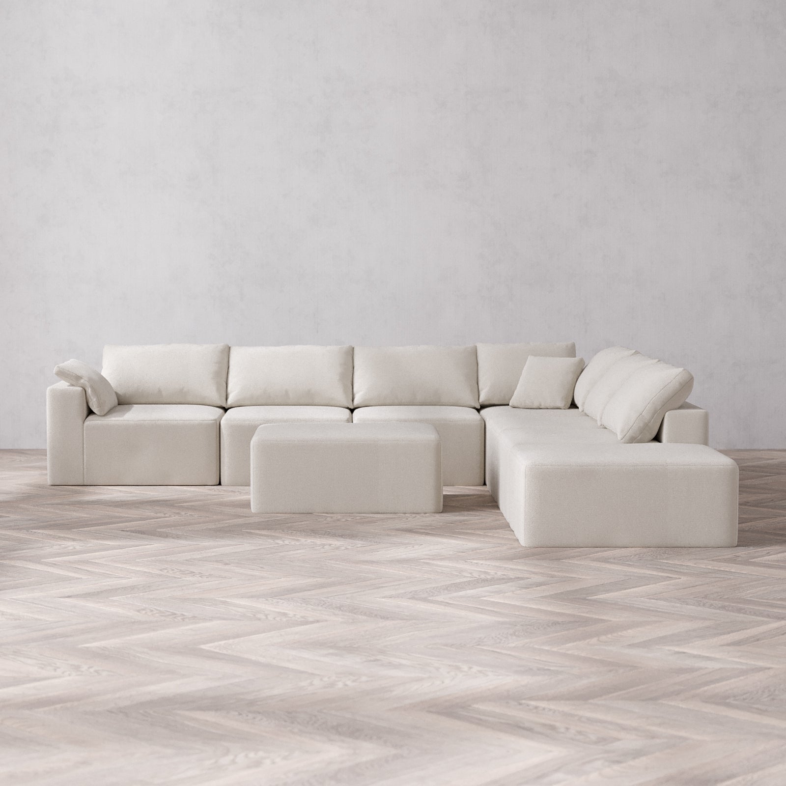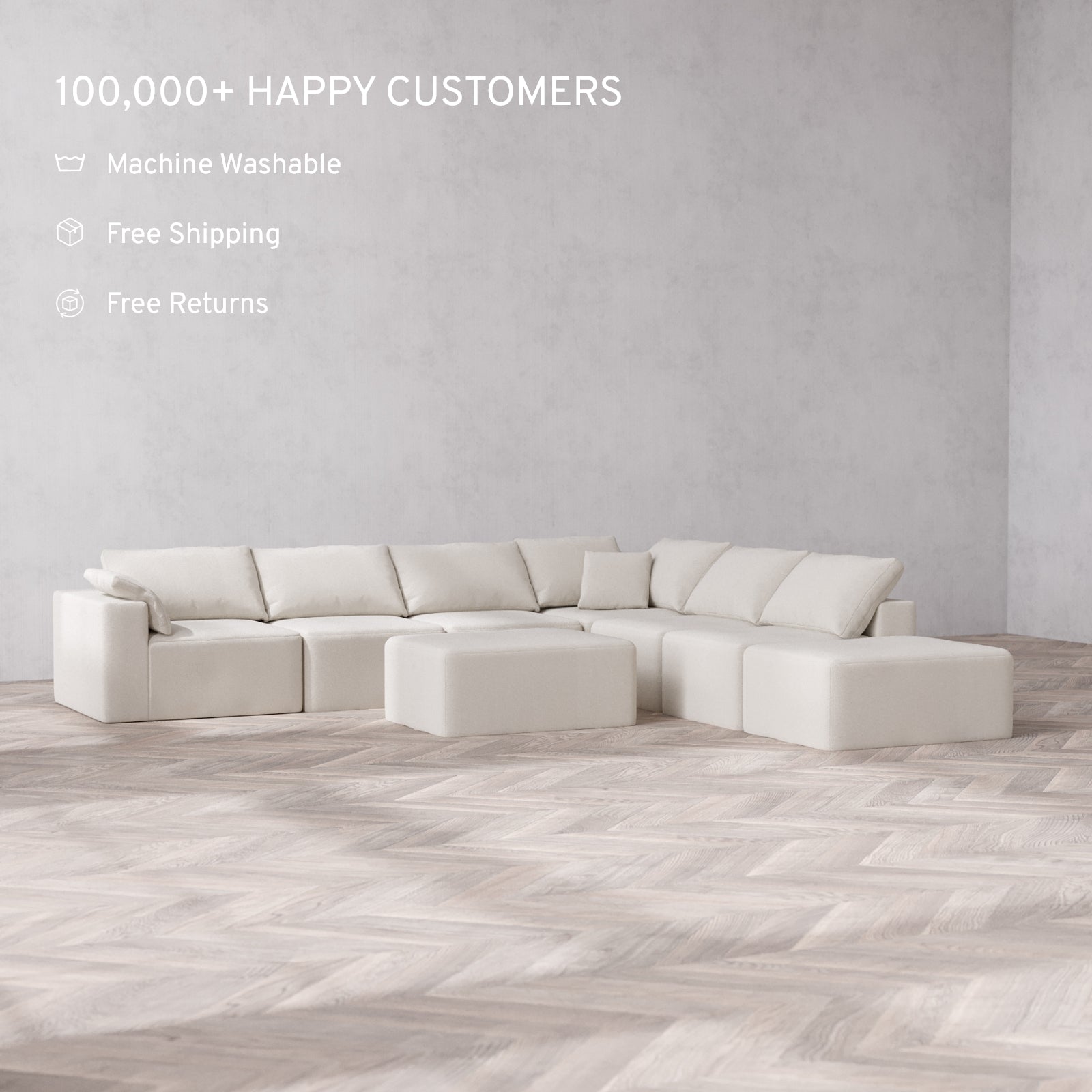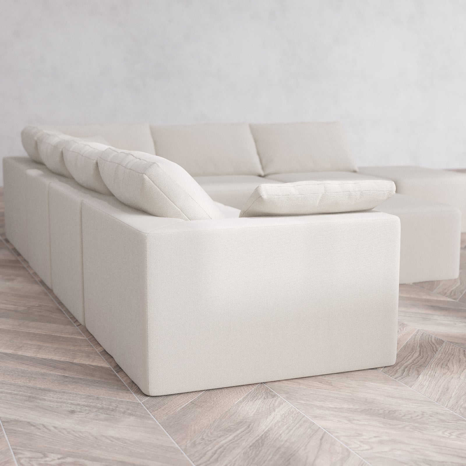 Slipcover Only - Modular Washable 7-Seater Open End Corner Sectional + Chaise Ottoman Cloud Sofa in Pearl | Left-Facing Arm