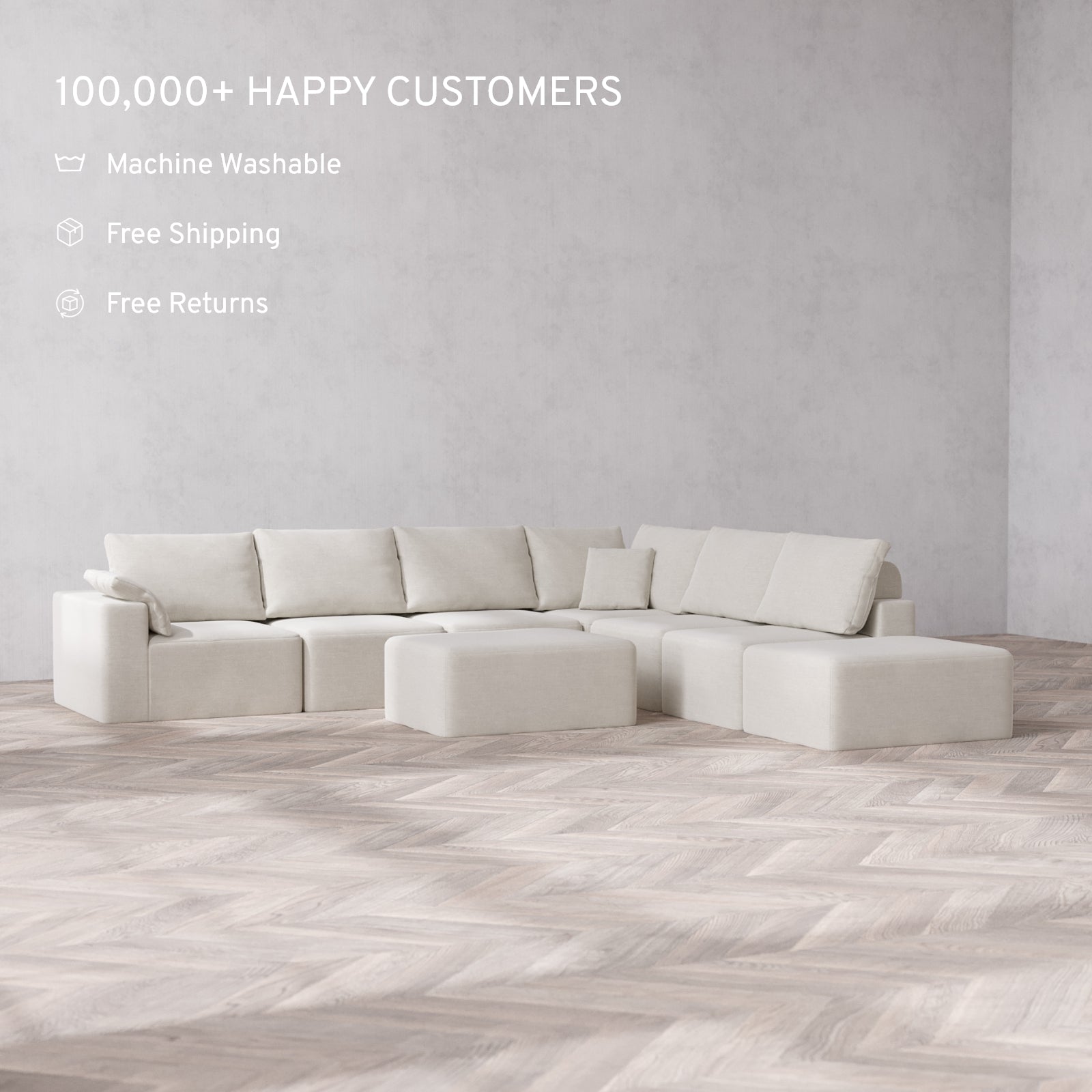 Slipcover Only - Modular Washable 7-Seater Open End Corner Sectional + Chaise Ottoman Cloud + Bolster Sofa in Cashew | Left-Facing Arm