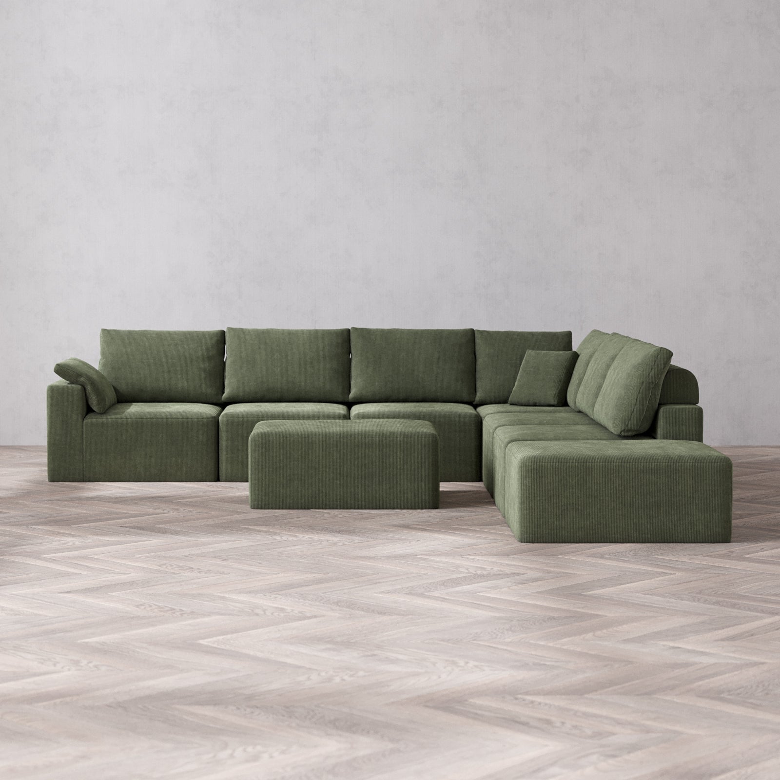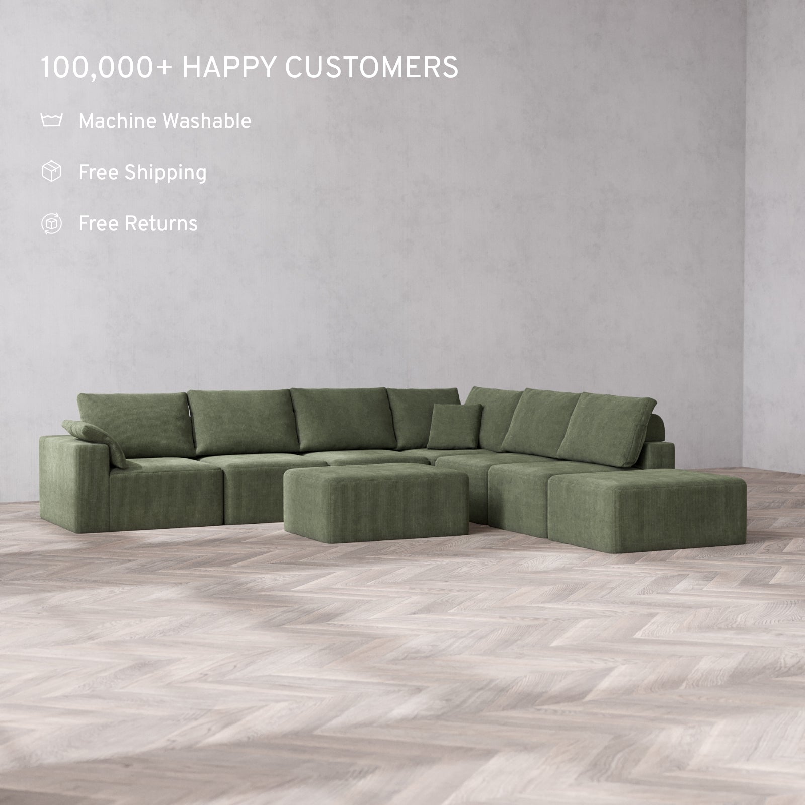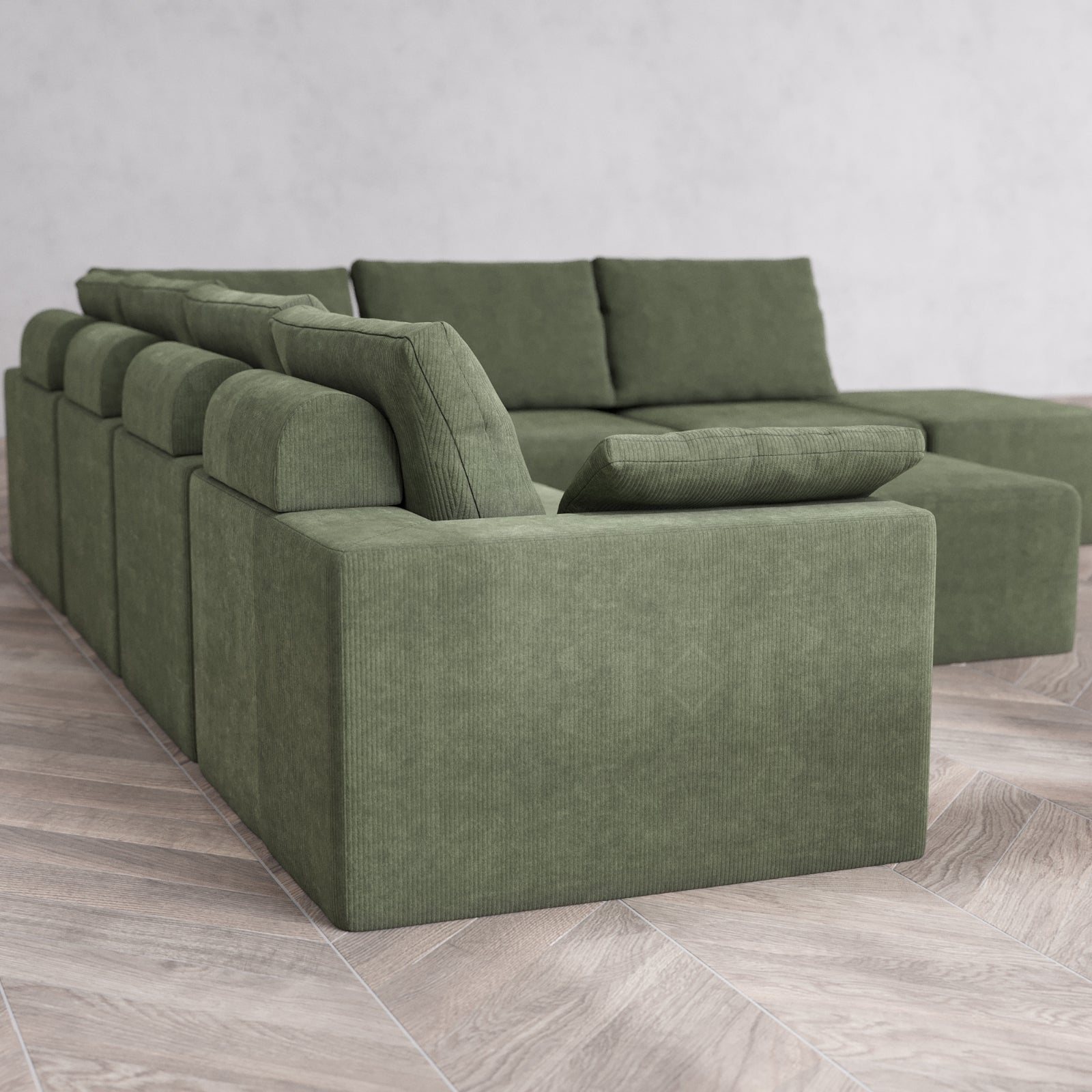 Slipcover Only - Modular Washable 7-Seater Open End Corner Sectional + Chaise Ottoman Cloud + Bolster Sofa in Juniper | Left-Facing Arm