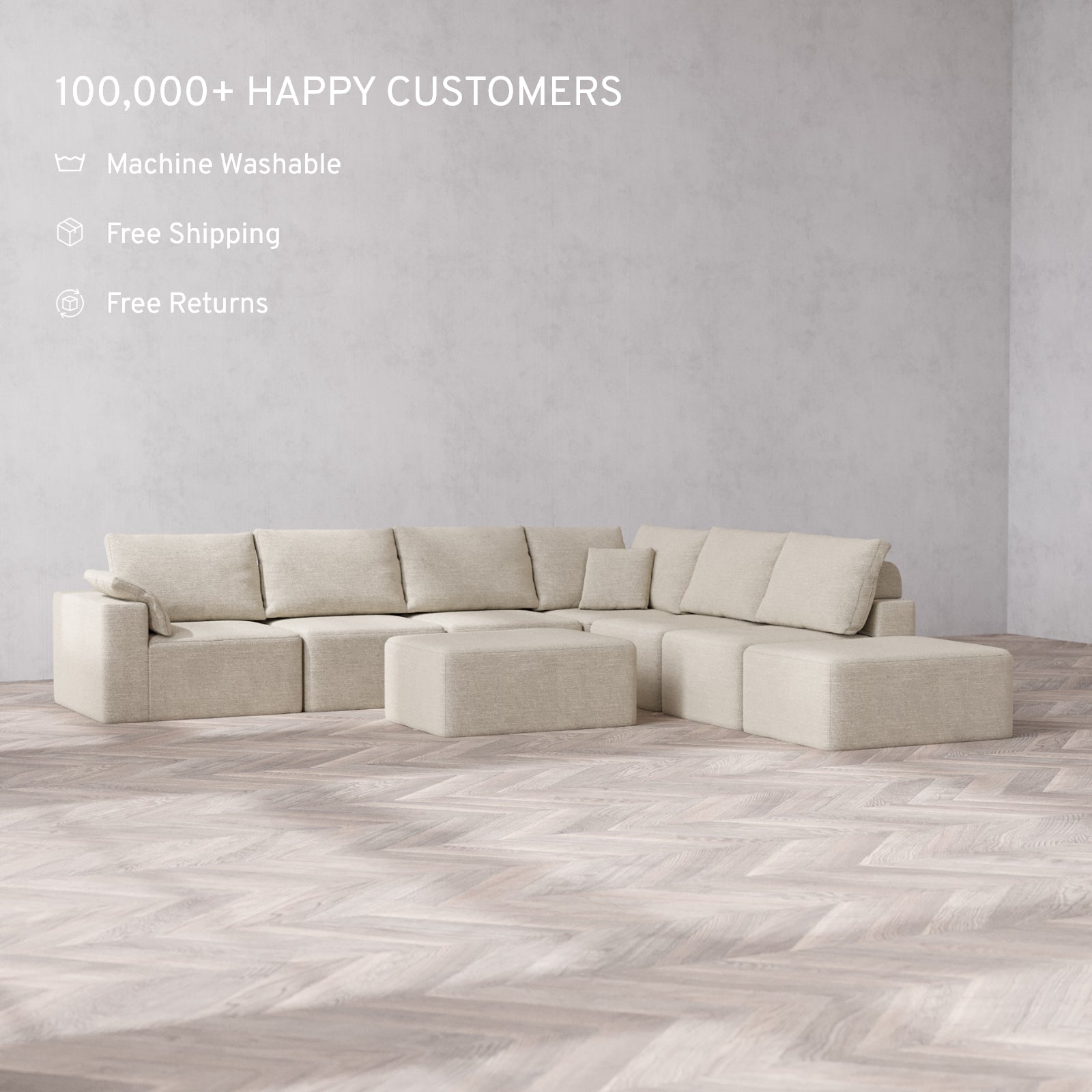Slipcover Only - Modular Washable 7-Seater Open End Corner Sectional + Chaise Ottoman Cloud + Bolster Sofa in Sandstone | Left-Facing Arm