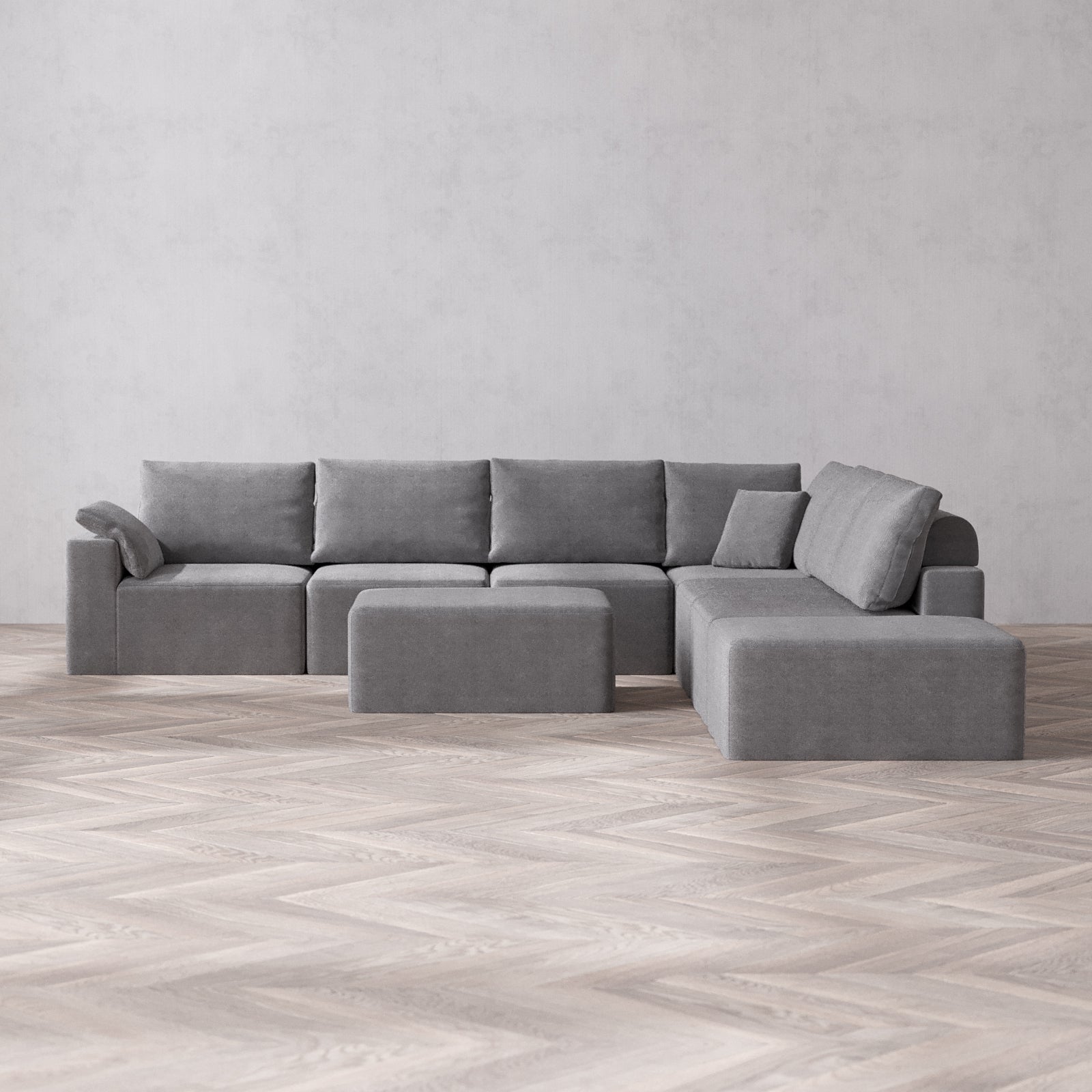Slipcover Only - Modular Washable 7-Seater Open End Corner Sectional + Chaise Ottoman Cloud + Bolster Sofa in Slate | Left-Facing Arm