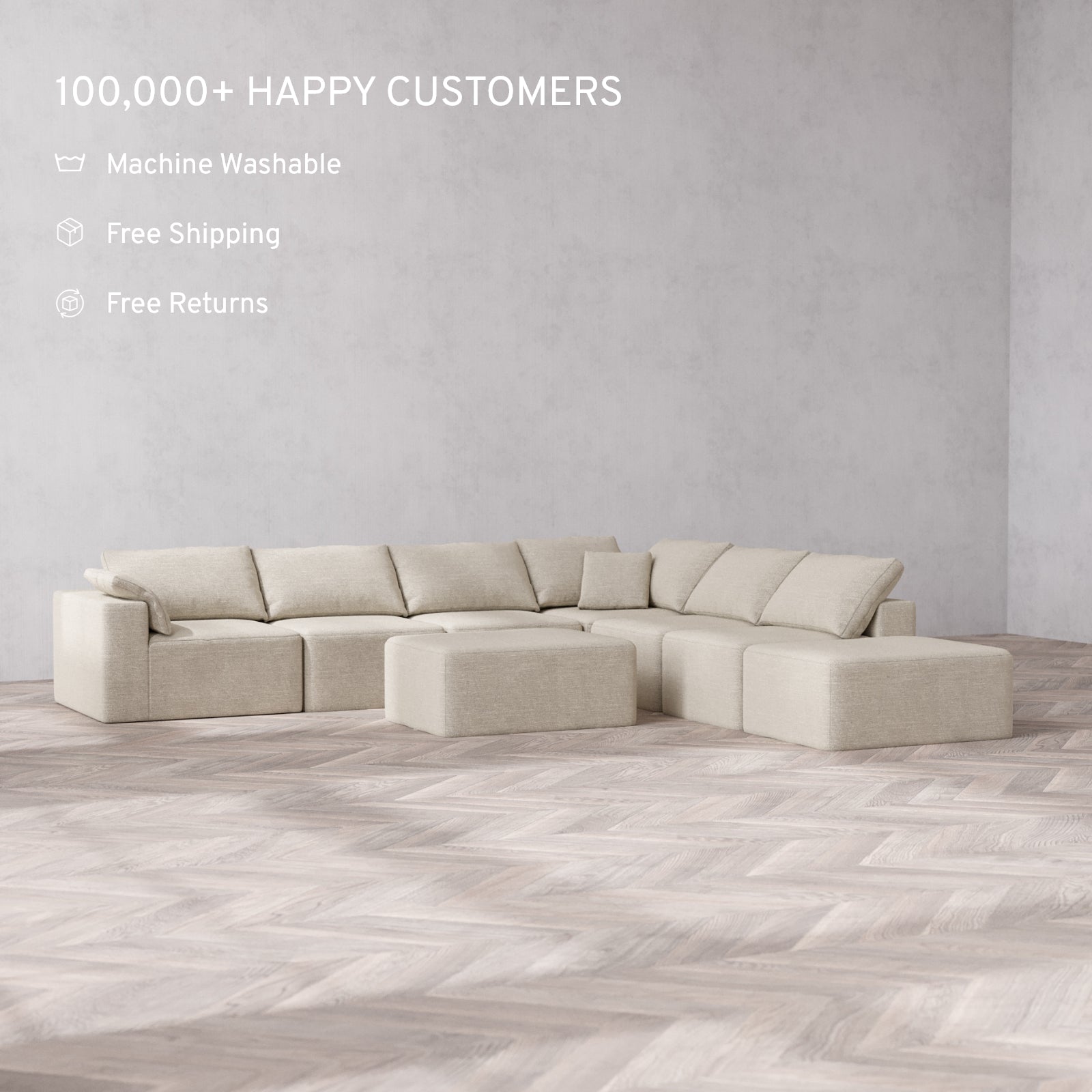 Slipcover Only - Modular Washable 7-Seater Open End Corner Sectional + Chaise Ottoman Cloud Sofa in Sandstone | Left-Facing Arm