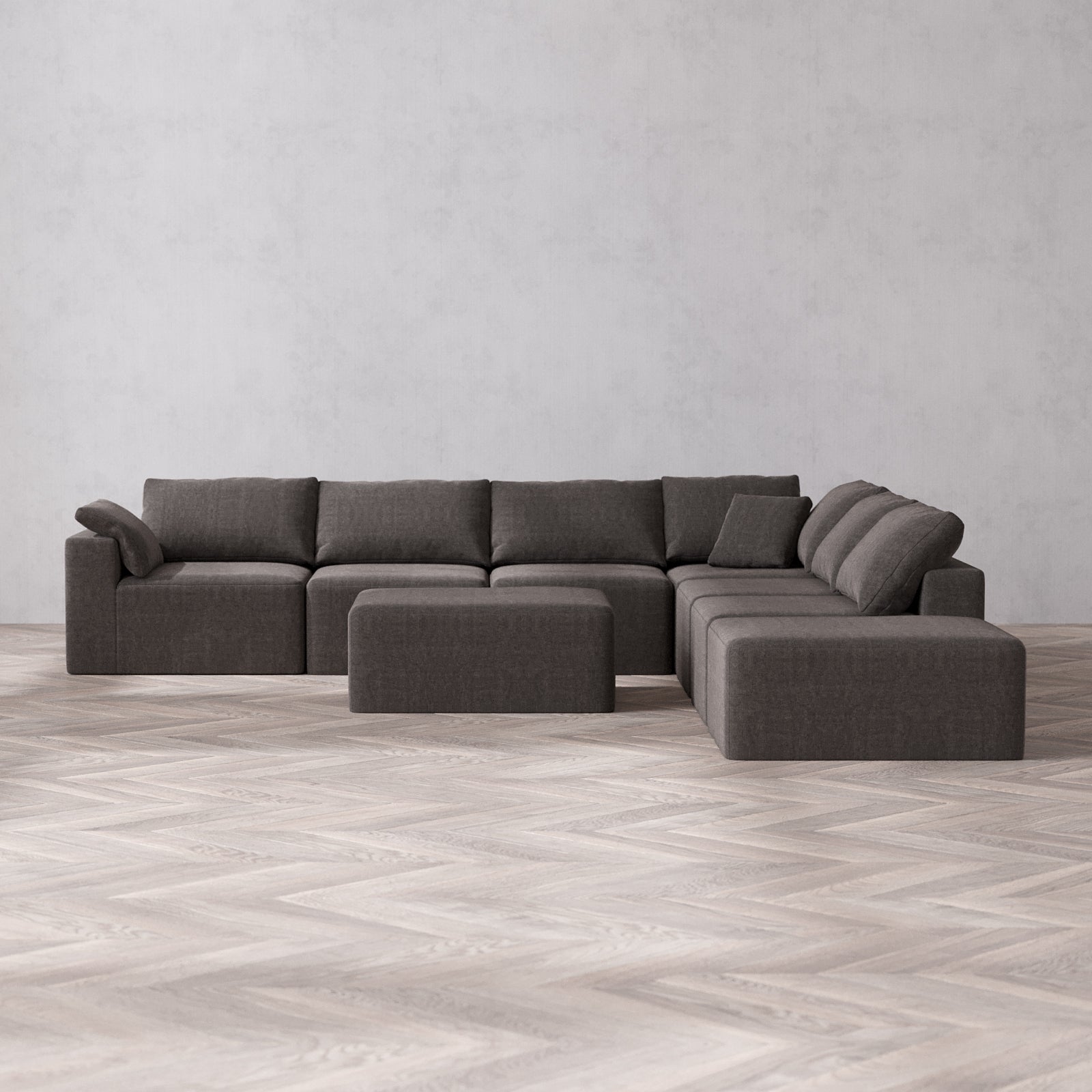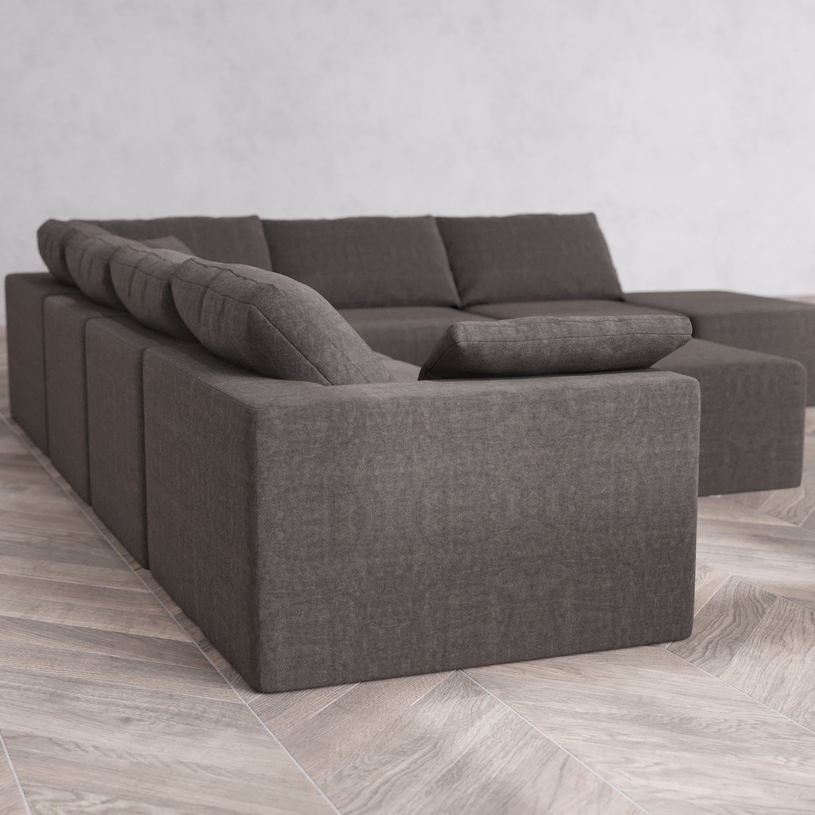 Slipcover Only - Modular Washable 7-Seater Open End Corner Sectional + Chaise Ottoman Cloud Sofa in Truffle | Left-Facing Arm