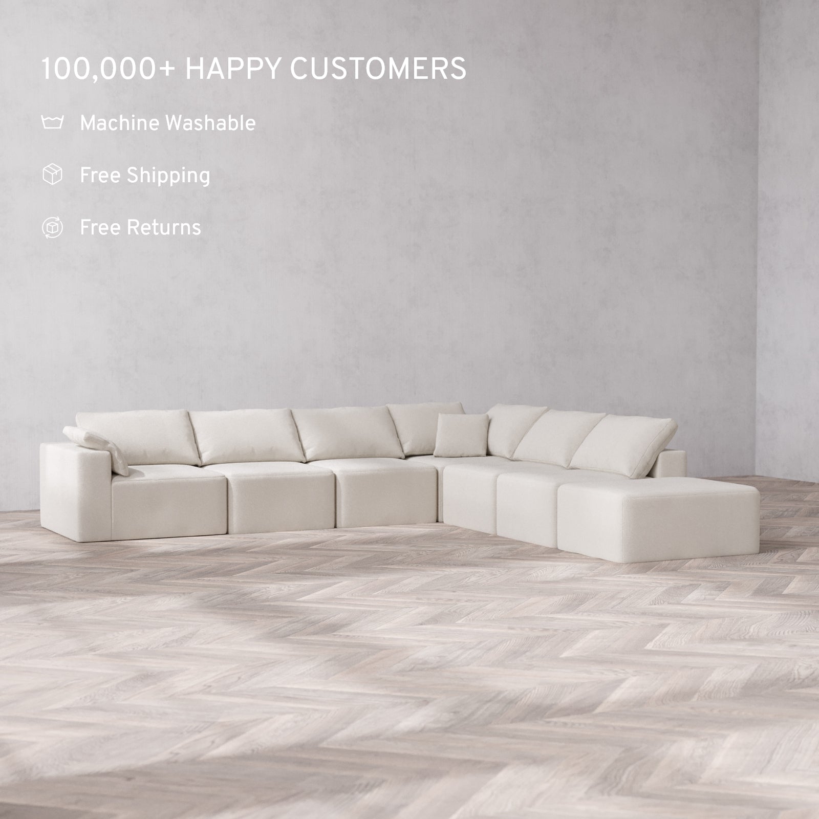 Slipcover Only - Modular Washable 7-Seater Open End Corner Sectional Cloud Sofa in Pearl | Left-Facing Arm