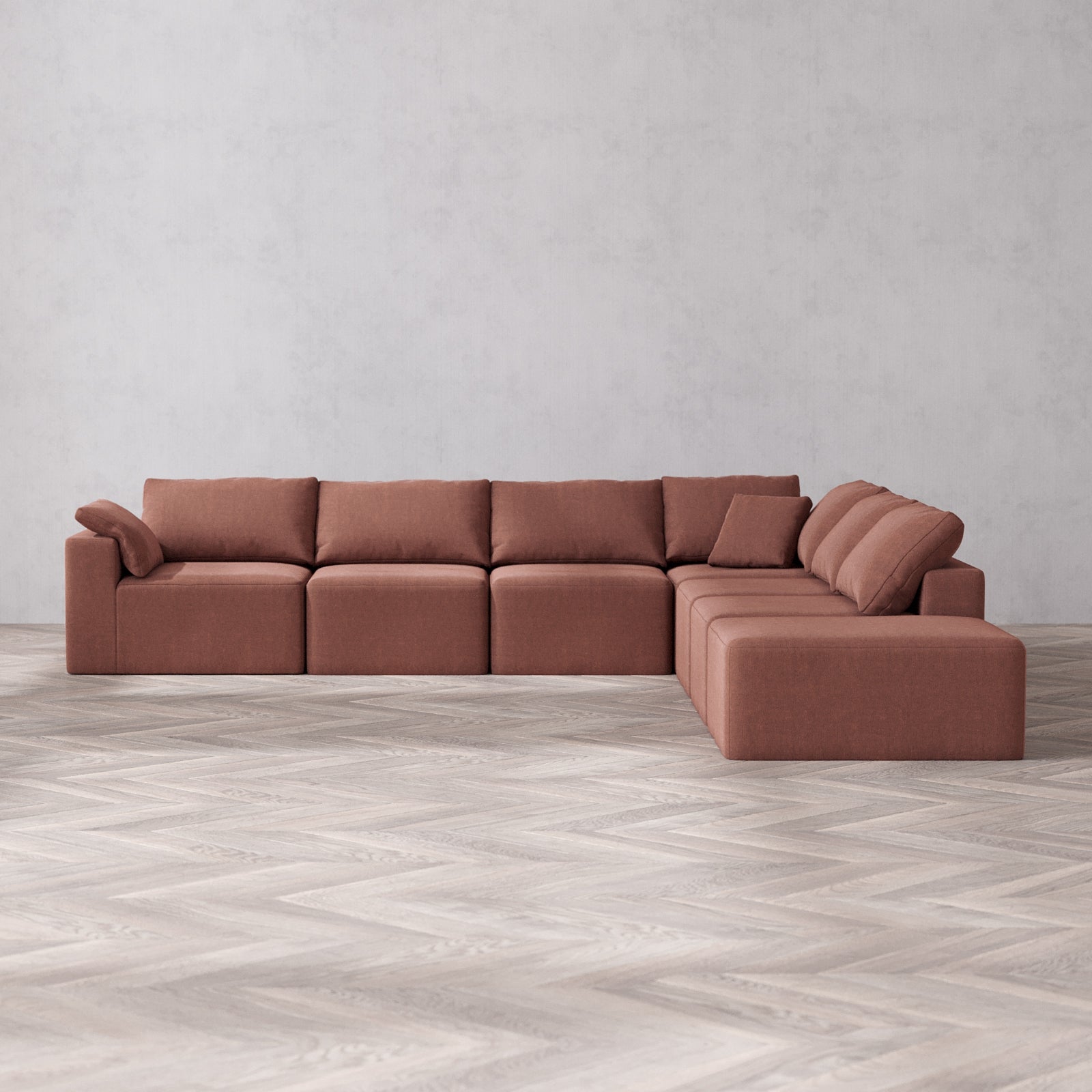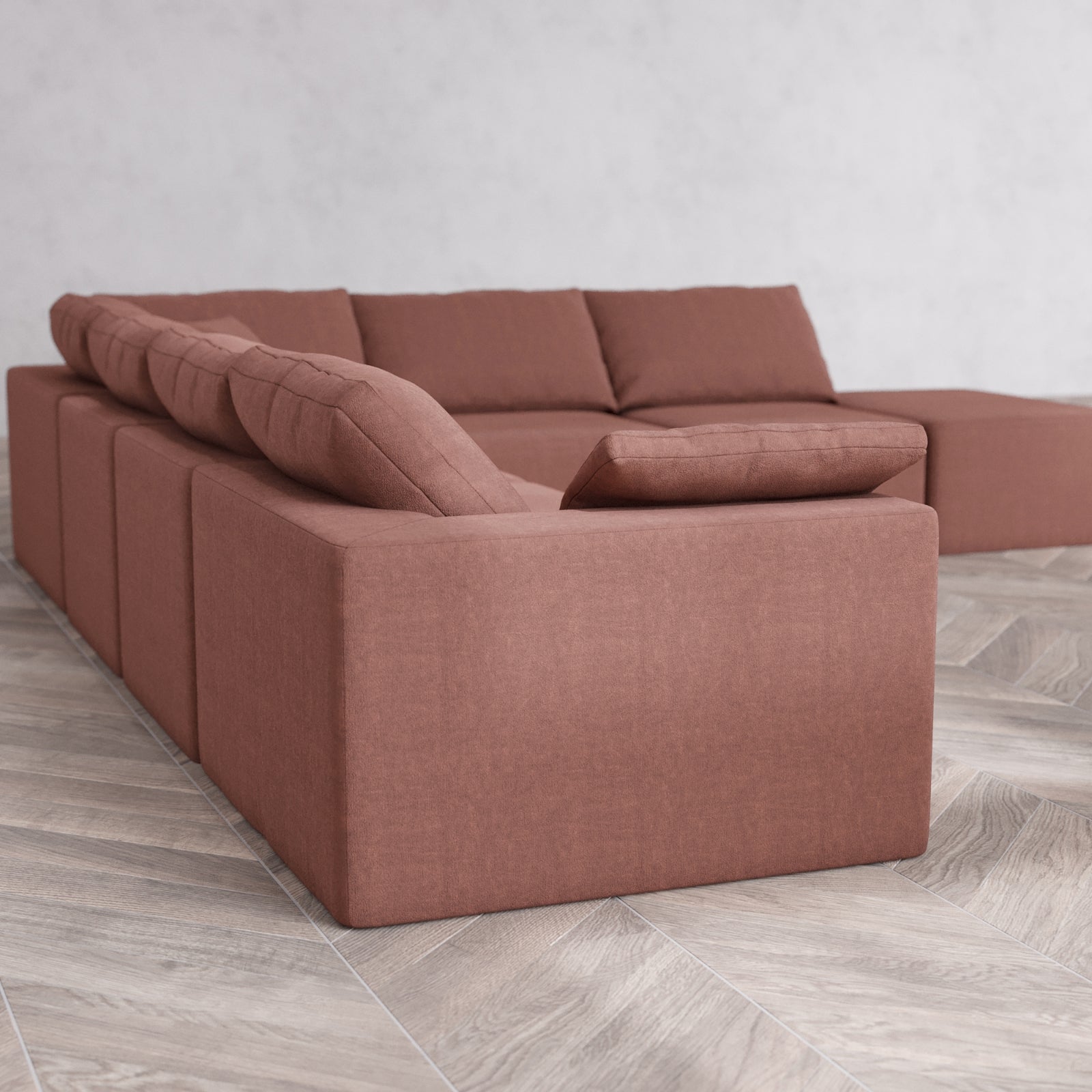 Slipcover Only - Modular Washable 7-Seater Open End Corner Sectional Cloud Sofa in Sumac | Left-Facing Arm