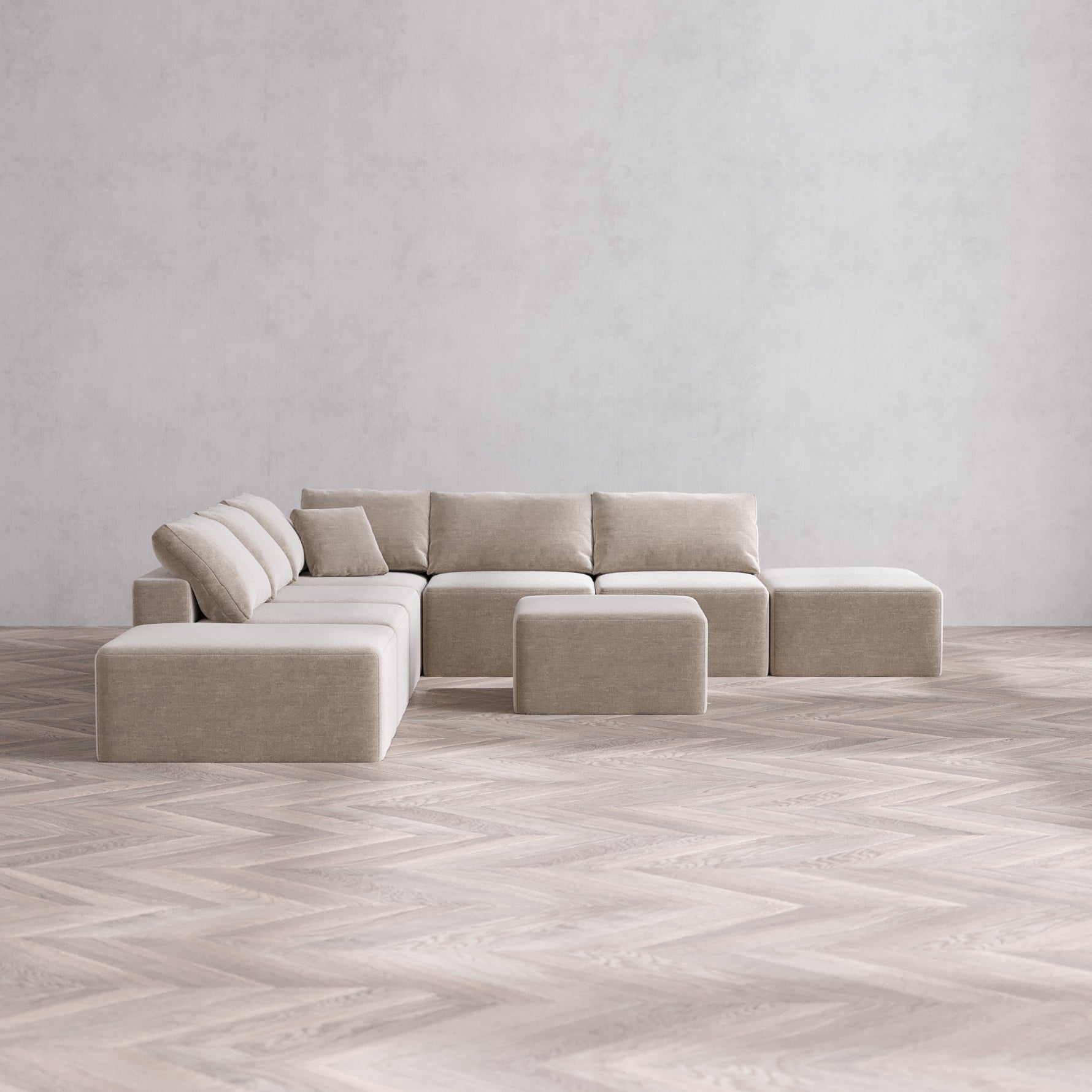 Slipcover Only - Modular Washable 7-Seater Open-Ends Corner Sectional Cloud Sofa in Caraway