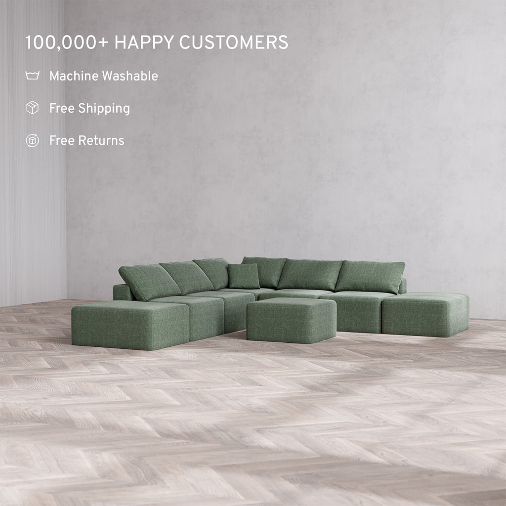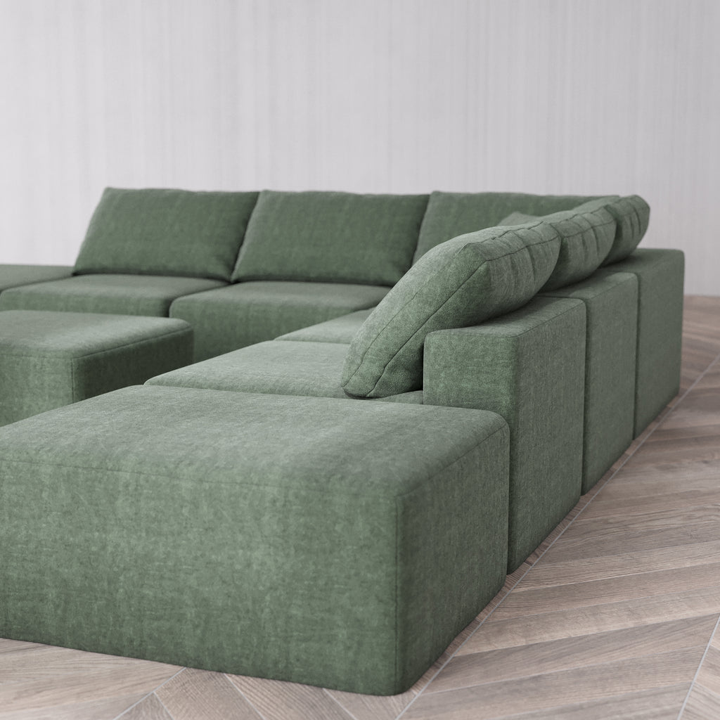 Slipcover Only - Modular Washable 7-Seater Open-Ends Corner Sectional Cloud Sofa in Sage