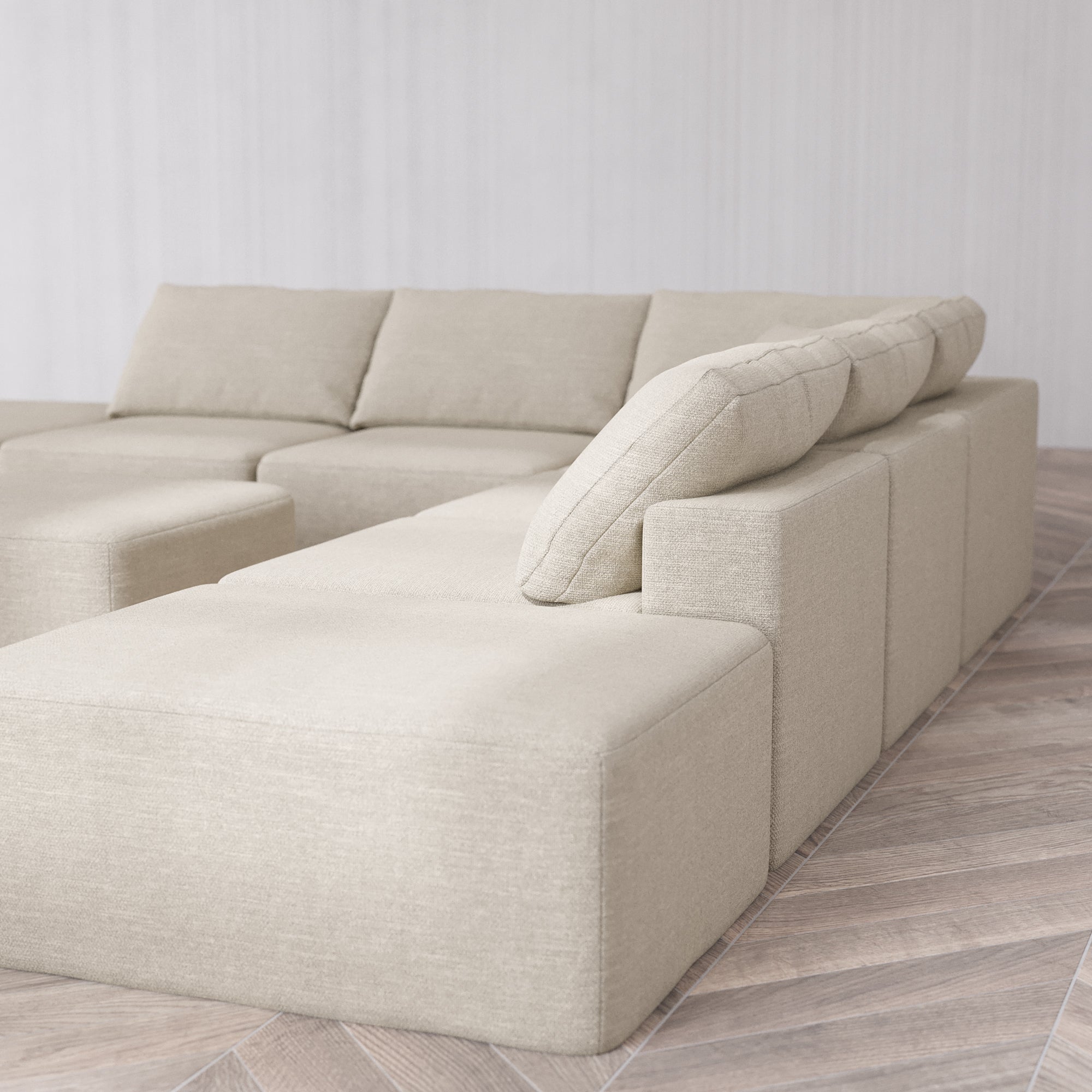 Slipcover Only - Modular Washable 7-Seater Open-Ends Corner Sectional Cloud Sofa in Sandstone