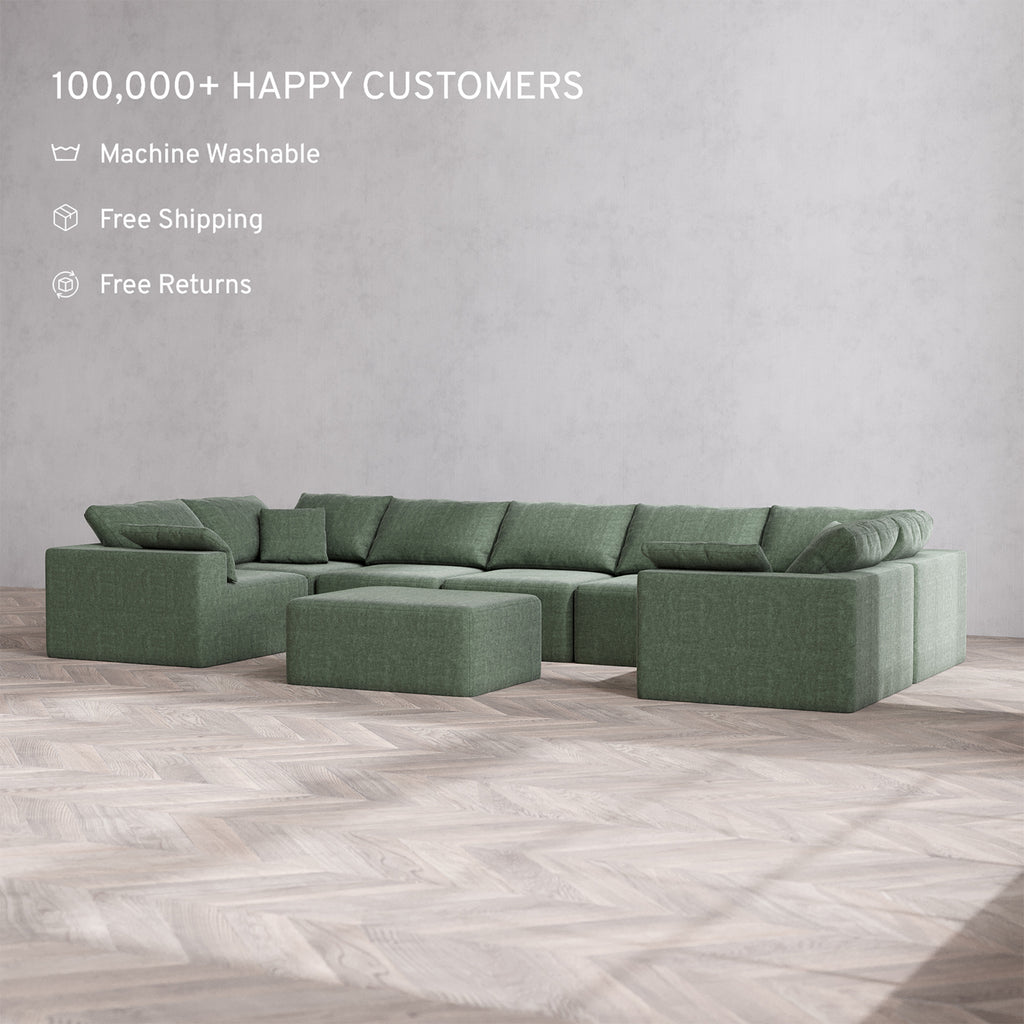 Slipcover Only - Modular Washable 7-Seater U Sectional + Chaise Ottoman Cloud Sofa in Sage