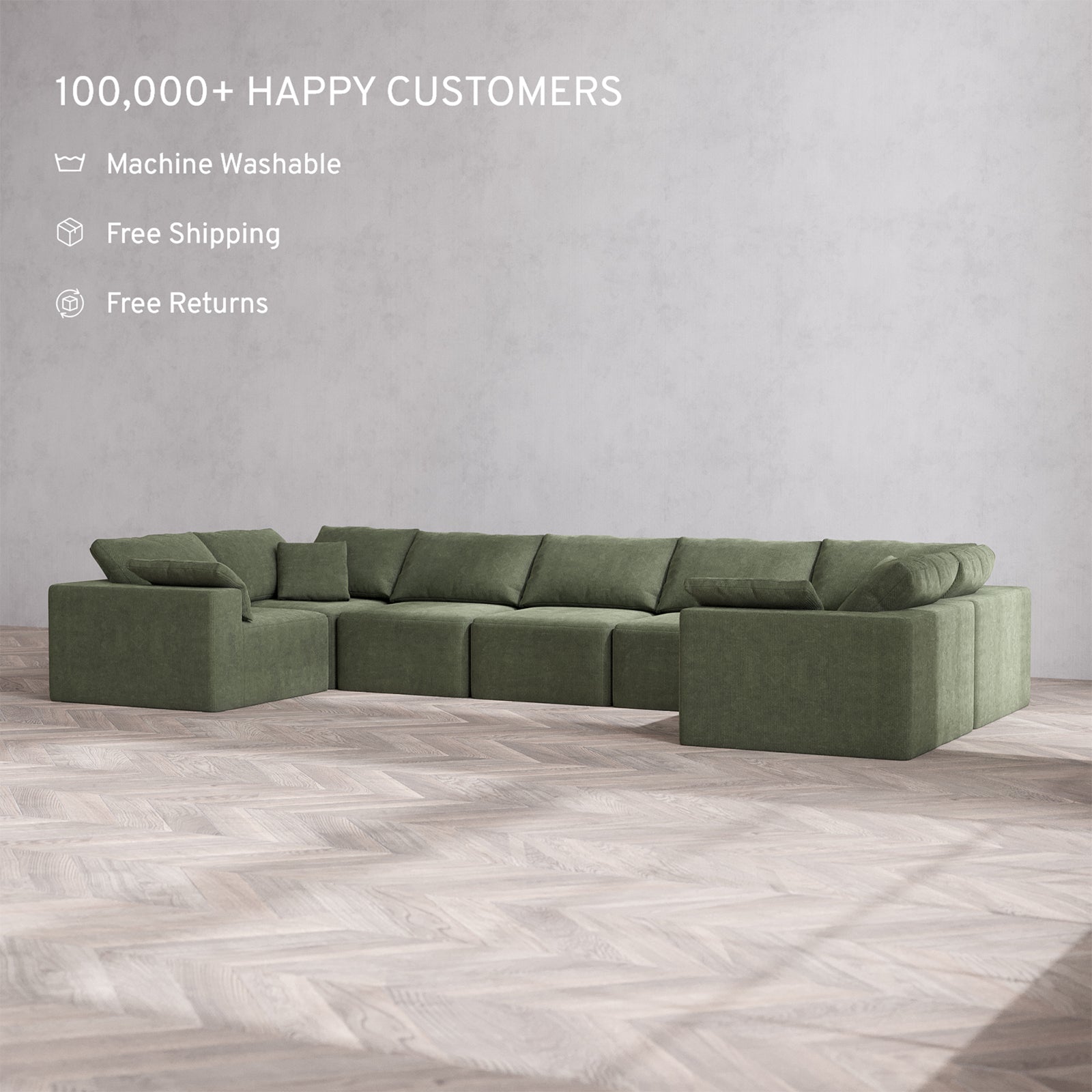 Slipcover Only - Modular Washable 7-Seater U Sectional Cloud Sofa in Juniper