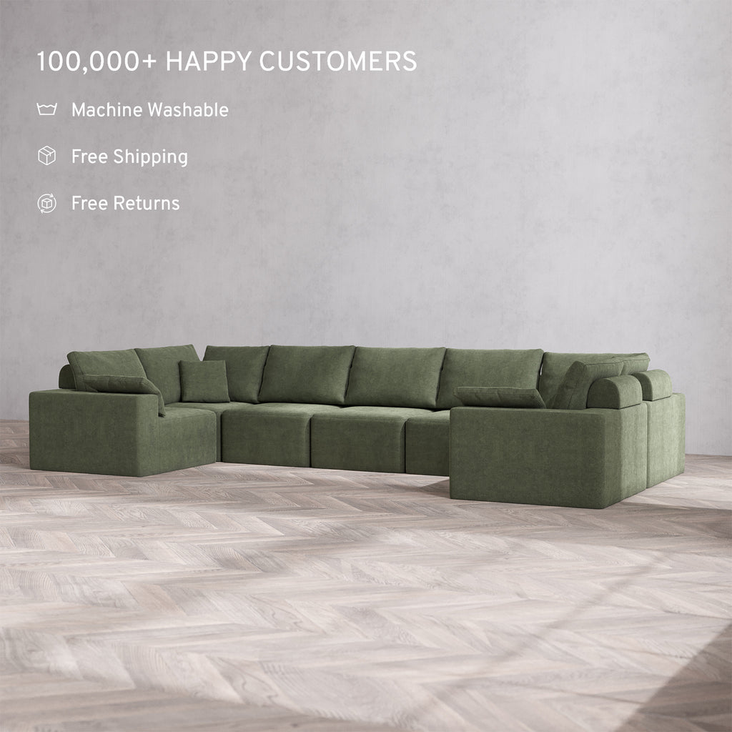 Slipcover Only - Modular Washable 7-Seater U Sectional Cloud + Bolster Sofa in Juniper