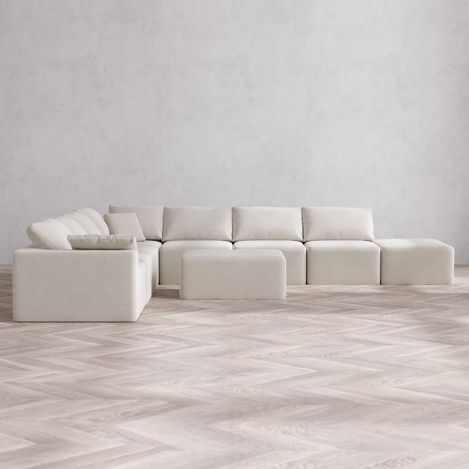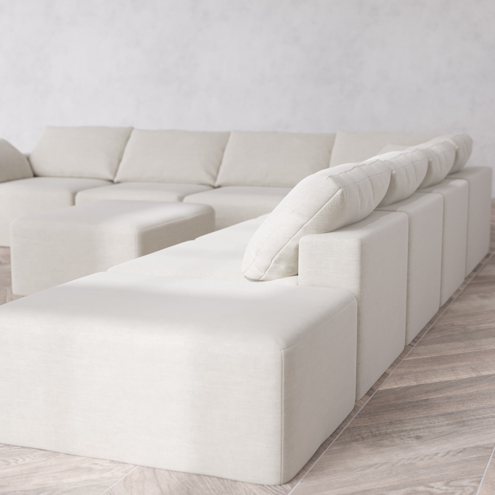 Slipcover Only - Modular Washable 8-Seater Open End Corner Sectional + Chaise Ottoman Cloud Sofa in Cashew | Left-Facing Arm