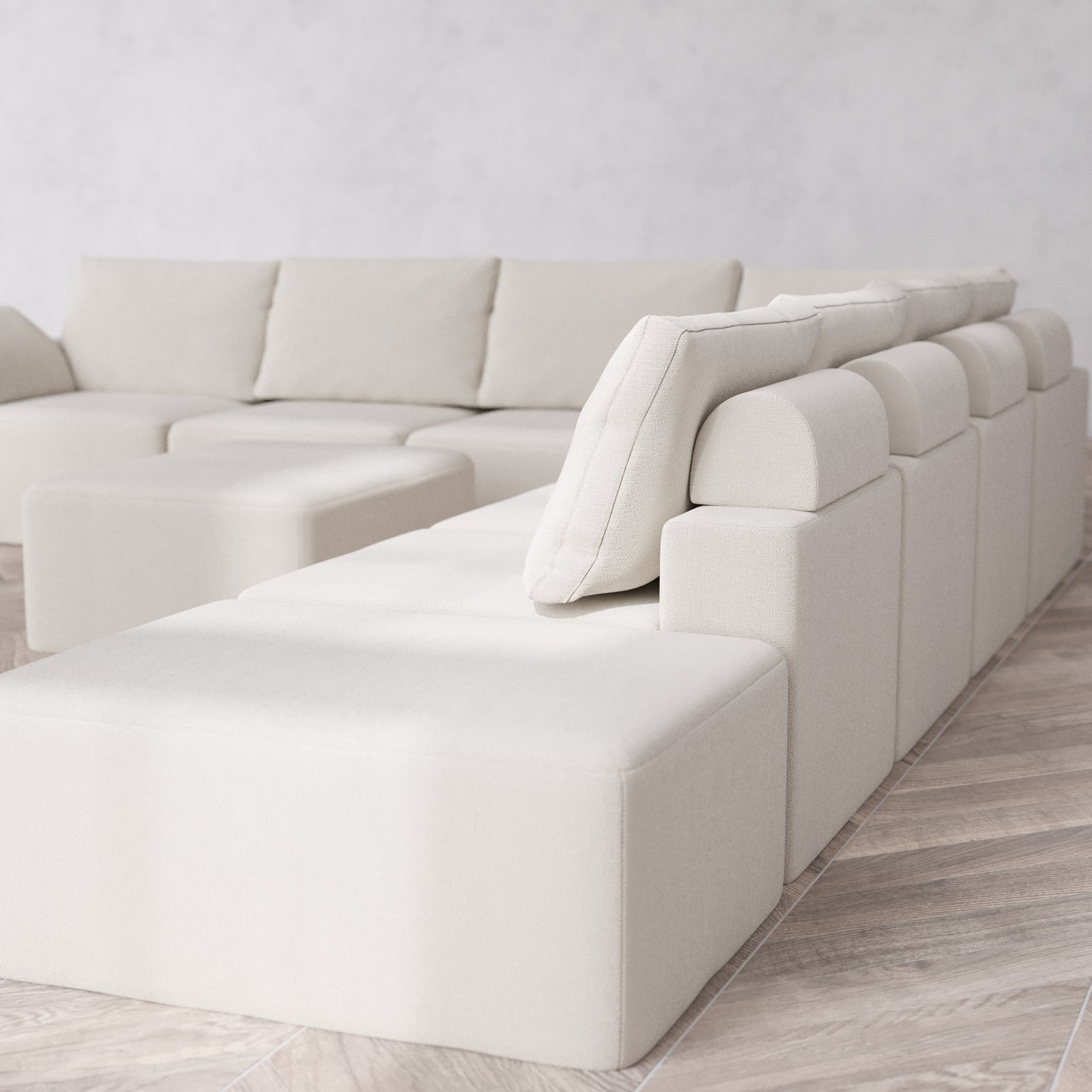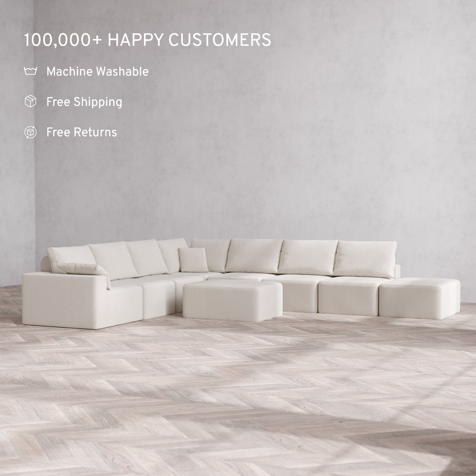 Slipcover Only - Modular Washable 8-Seater Open End Corner Sectional + Chaise Ottoman Cloud + Bolster Sofa in Pearl | Left-Facing Arm