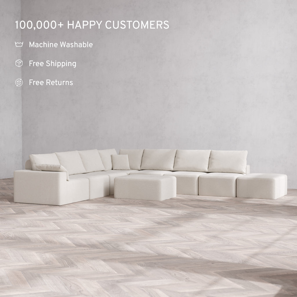 Machine Washable: Every piece of fabric—including the internal quilted duvet—is fully removable and machine washable. It’s the only Cloud-style sofa you can truly deep clean, effortlessly.