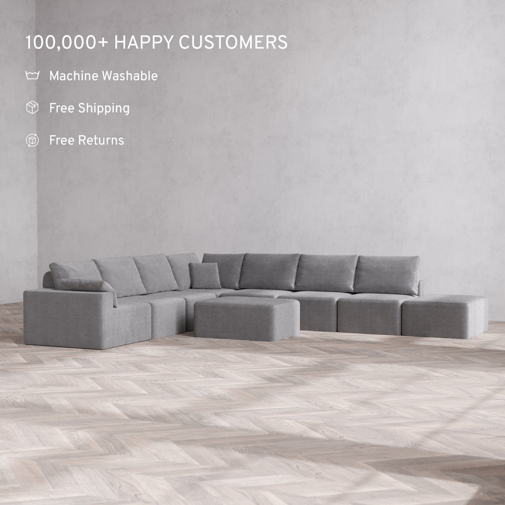 Slipcover Only - Modular Washable 8-Seater Open End Corner Sectional + Chaise Ottoman Cloud + Bolster Sofa in Slate | Left-Facing Arm