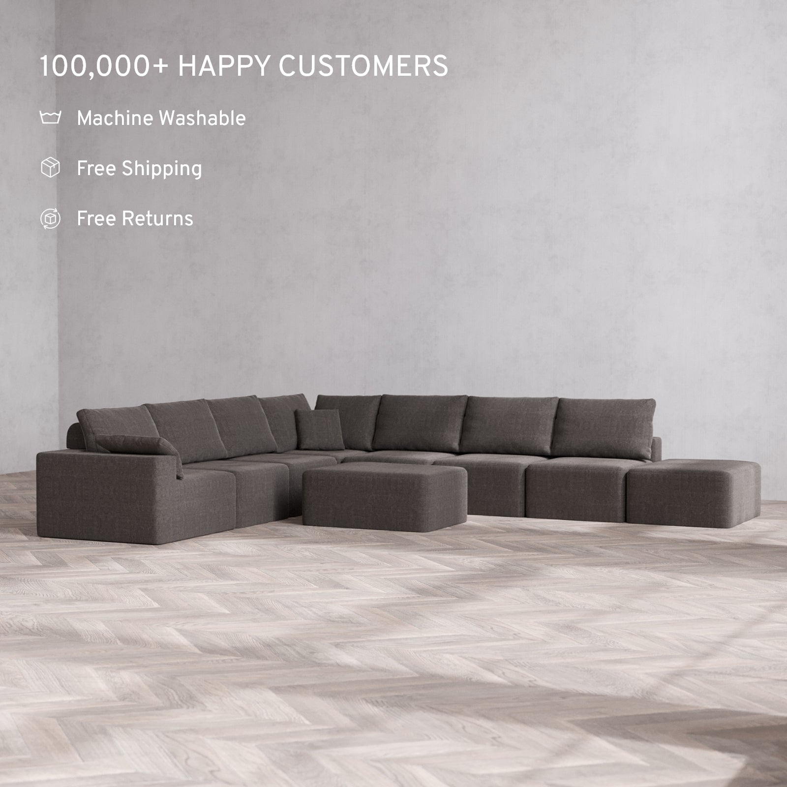 Slipcover Only - Modular Washable 8-Seater Open End Corner Sectional + Chaise Ottoman Cloud + Bolster Sofa in Truffle | Left-Facing Arm