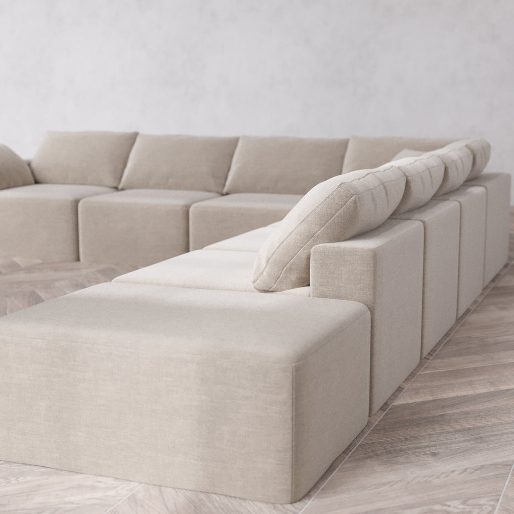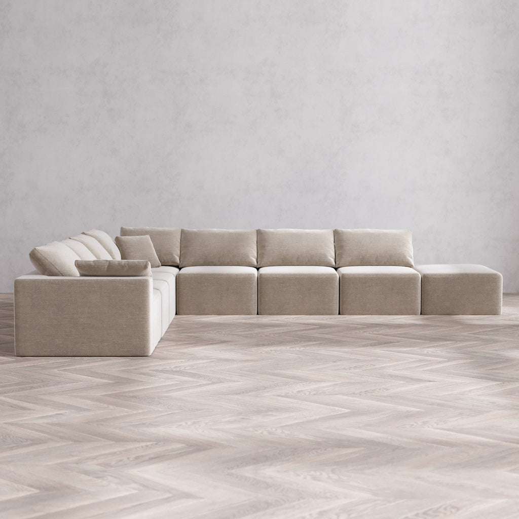 Slipcover Only - Modular Washable 8-Seater Open End Corner Sectional Cloud Sofa in Caraway | Left-Facing Arm