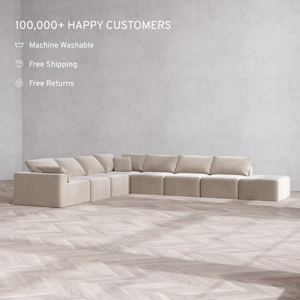 Machine Washable: Every piece of fabric—including the internal quilted duvet—is fully removable and machine washable. It’s the only Cloud-style sofa you can truly deep clean, effortlessly.