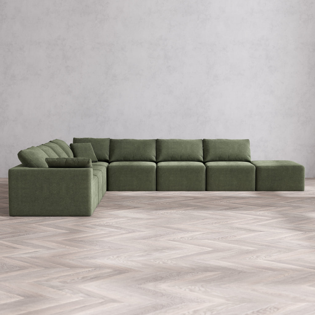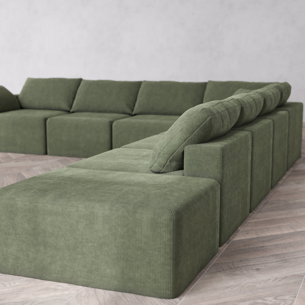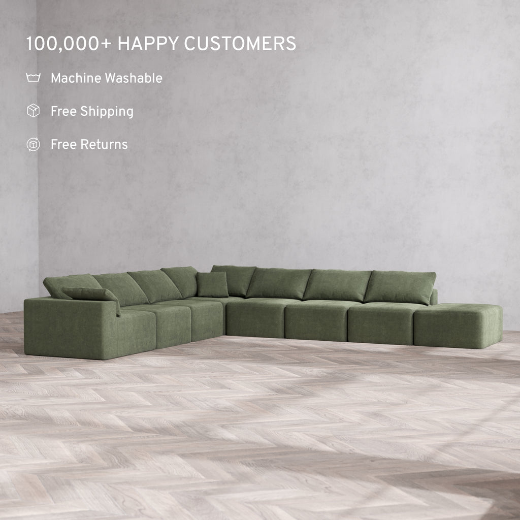 Slipcover Only - Modular Washable 8-Seater Open End Corner Sectional Cloud Sofa in Juniper | Left-Facing Arm