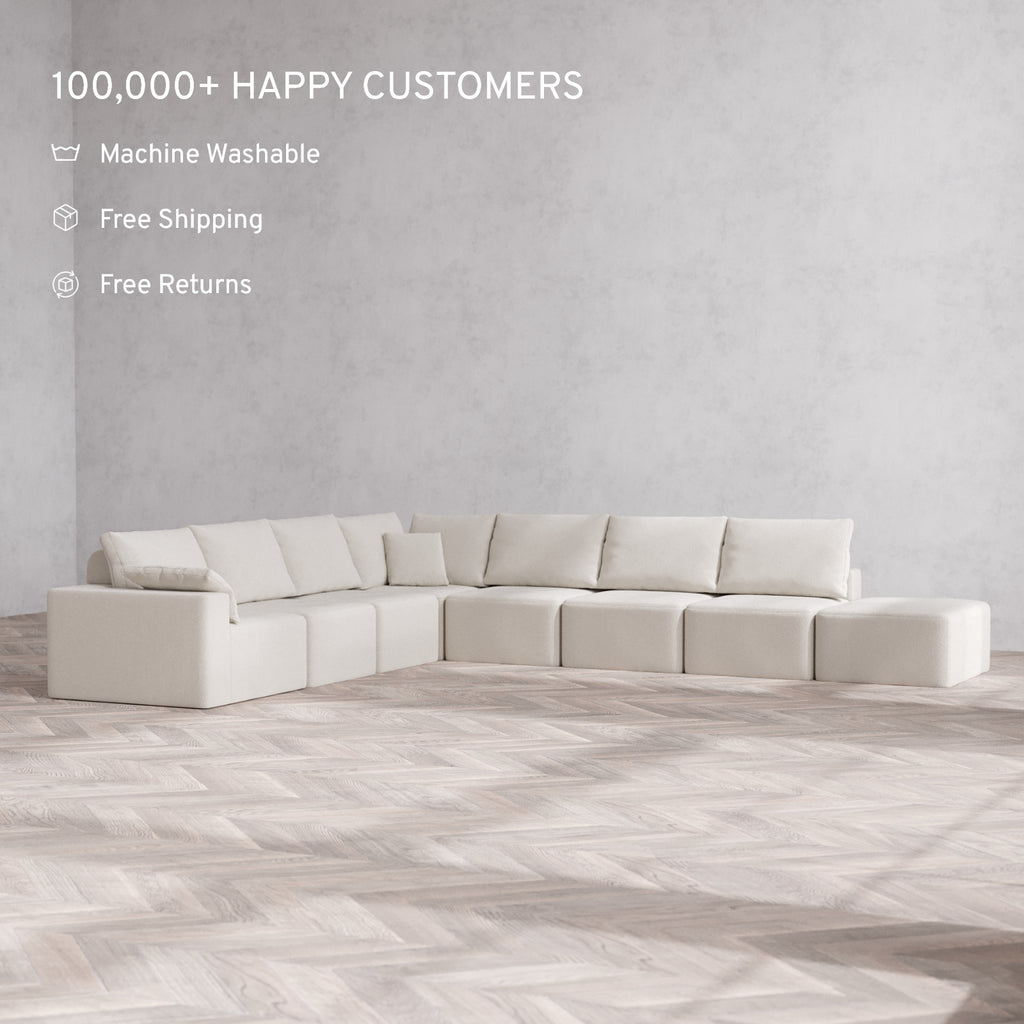 Machine Washable: Every piece of fabric—including the internal quilted duvet—is fully removable and machine washable. It’s the only Cloud-style sofa you can truly deep clean, effortlessly.