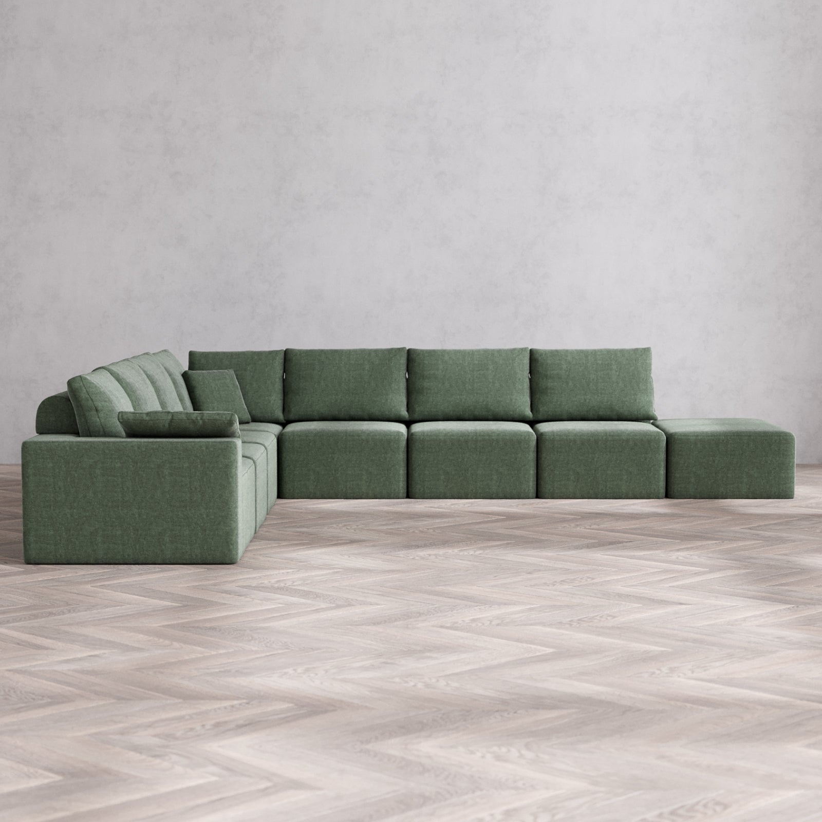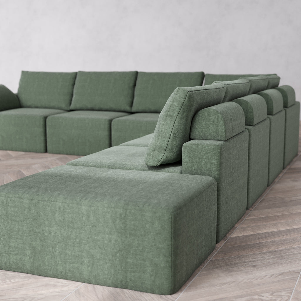 Slipcover Only - Modular Washable 8-Seater Open End Corner Sectional Cloud + Bolster Sofa in Sage | Left-Facing Arm