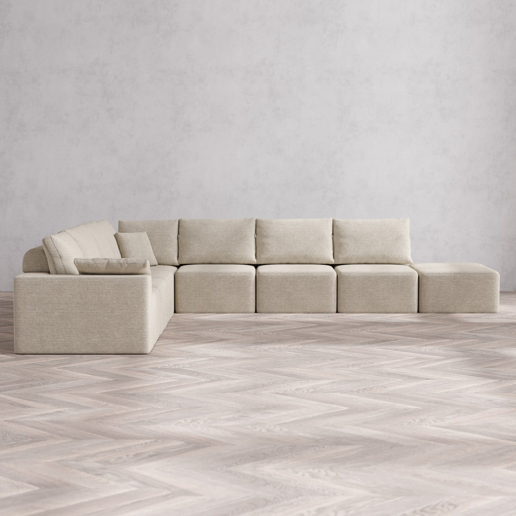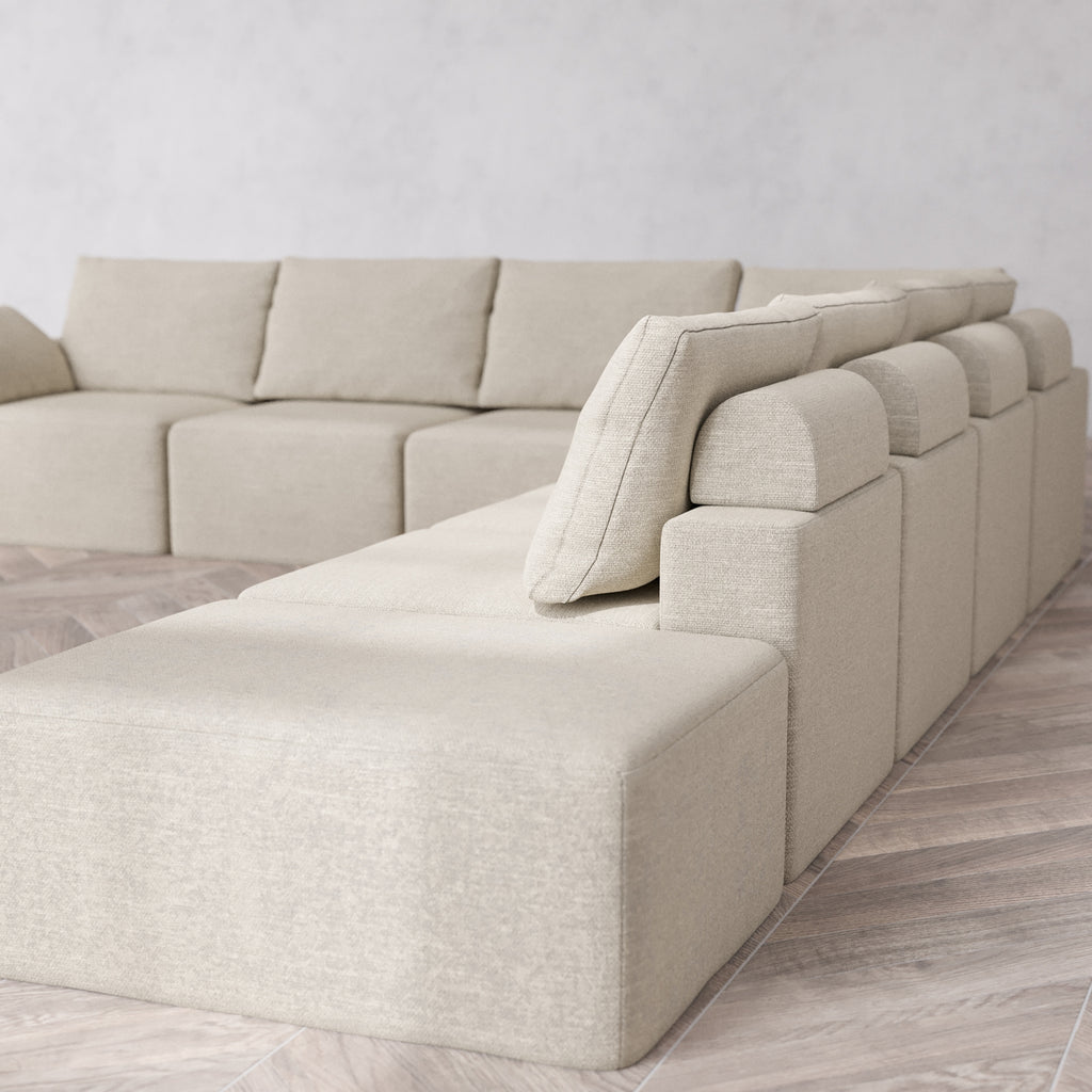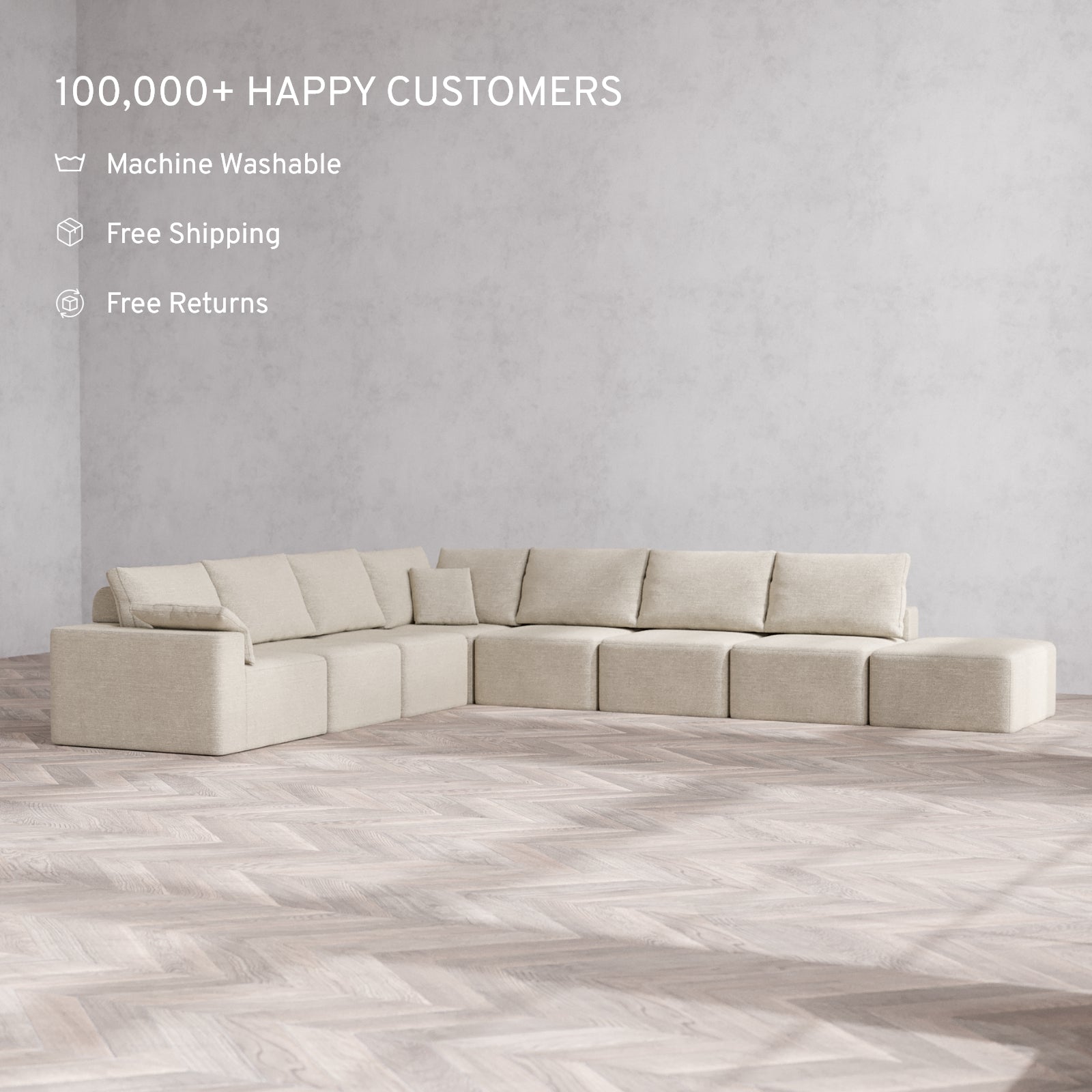 Slipcover Only - Modular Washable 8-Seater Open End Corner Sectional Cloud + Bolster Sofa in Sandstone | Left-Facing Arm