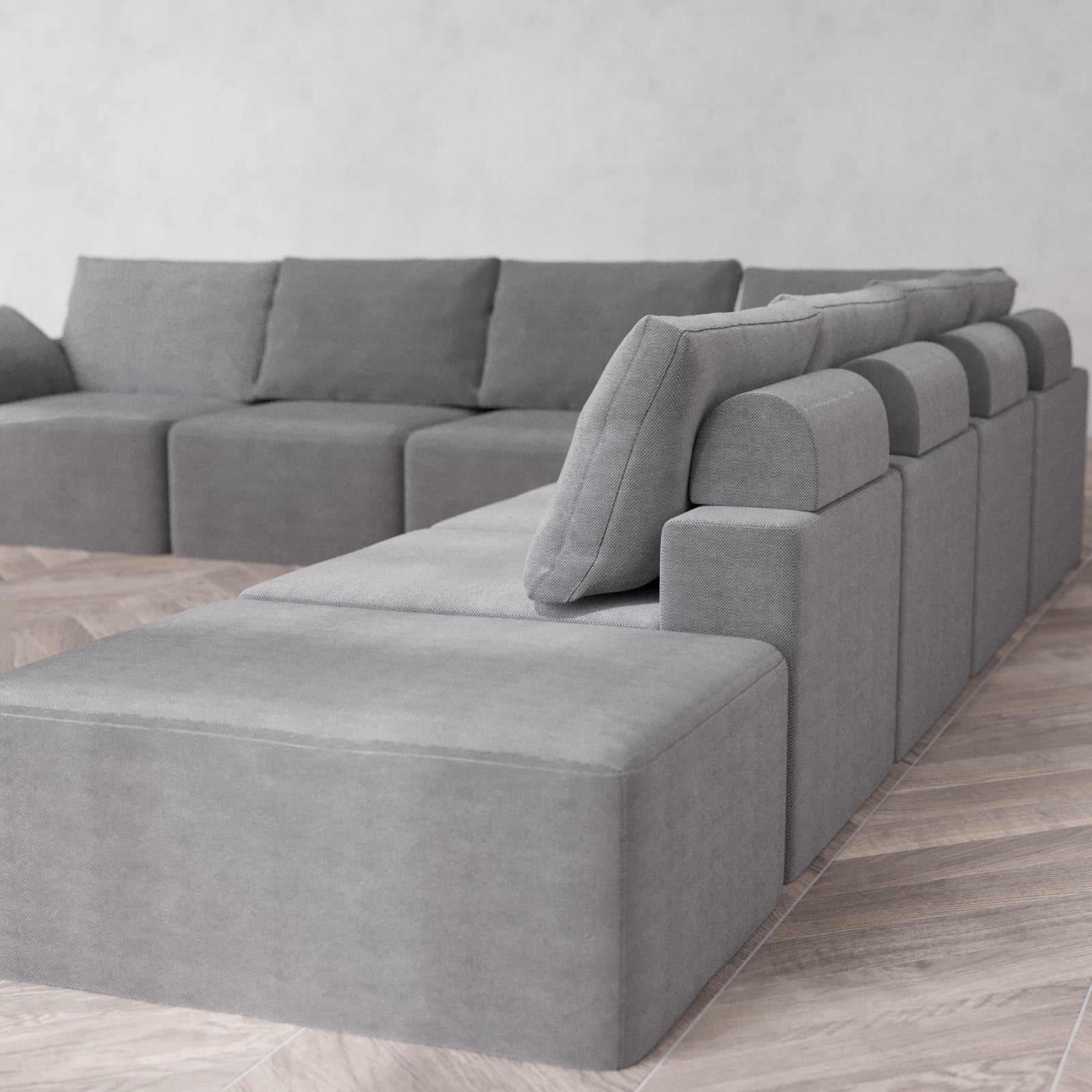 Slipcover Only - Modular Washable 8-Seater Open End Corner Sectional Cloud + Bolster Sofa in Slate | Left-Facing Arm