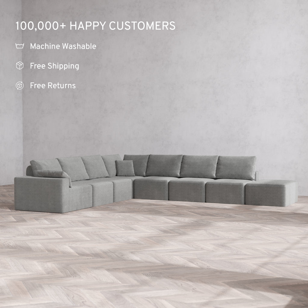 Machine Washable: Every piece of fabric—including the internal quilted duvet—is fully removable and machine washable. It’s the only Cloud-style sofa you can truly deep clean, effortlessly.