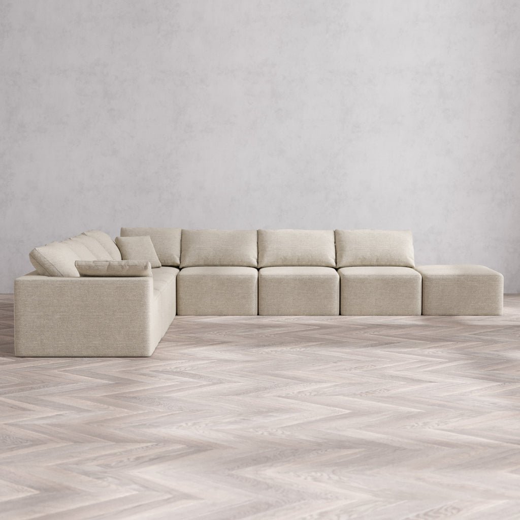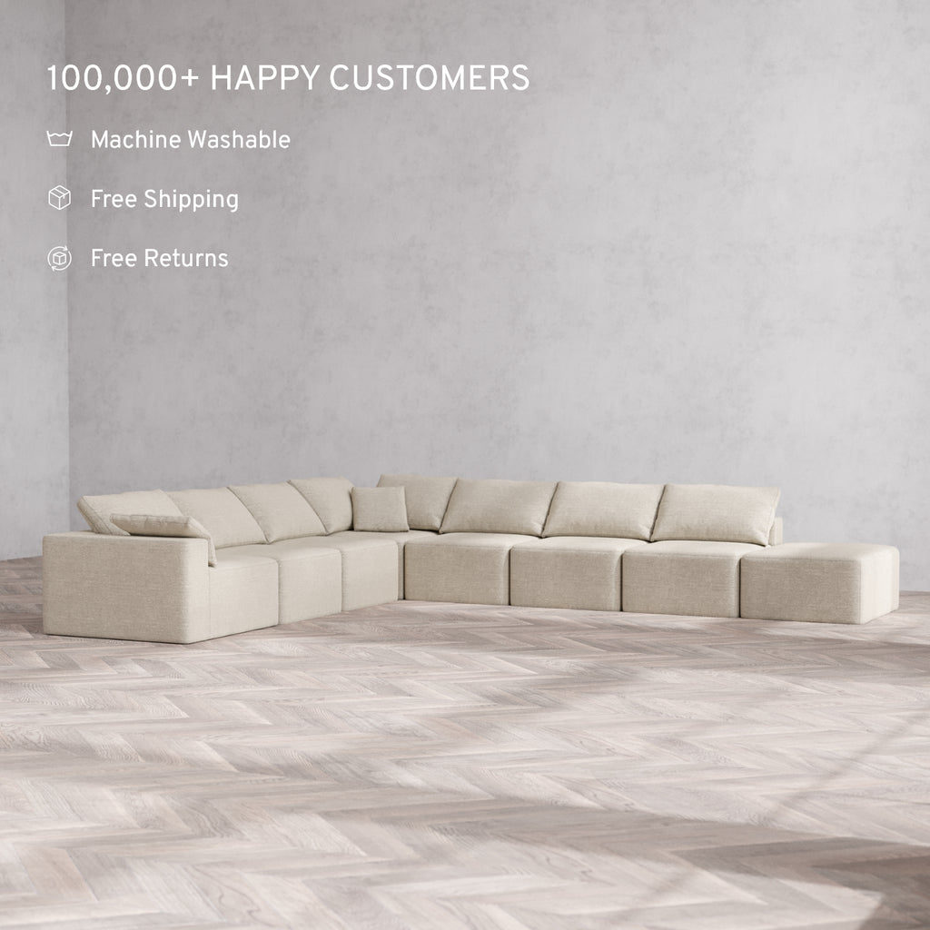Slipcover Only - Modular Washable 8-Seater Open End Corner Sectional Cloud Sofa in Sandstone | Left-Facing Arm