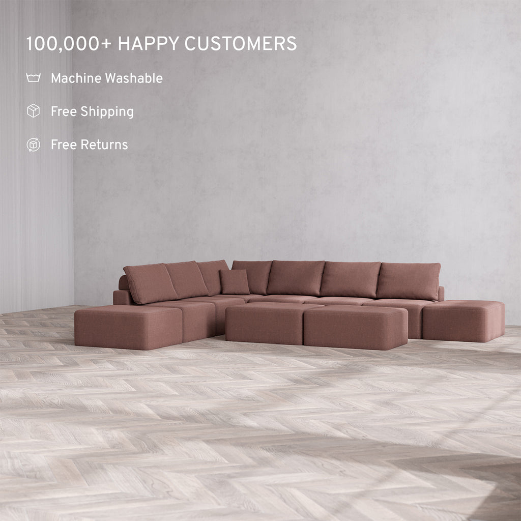 Slipcover Only - Modular Washable 8-Seater Open-Ends Corner Sectional + Chaise Ottoman Bench Cloud + Bolster Sofa in Sumac