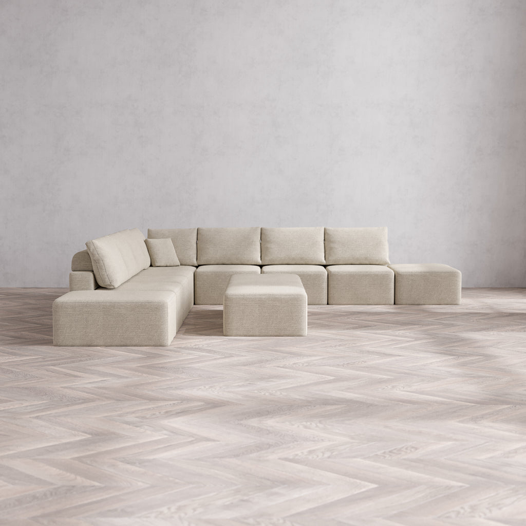 Designed with true flexibility in mind, our modular system adapts to your space and your lifestyle. Whether you're expanding, downsizing, or simply reimagining your layout, each piece connects effortlessly to create a configuration that works for you—today, and as life changes.